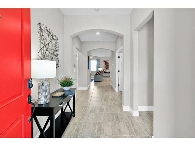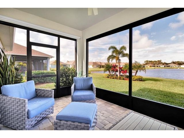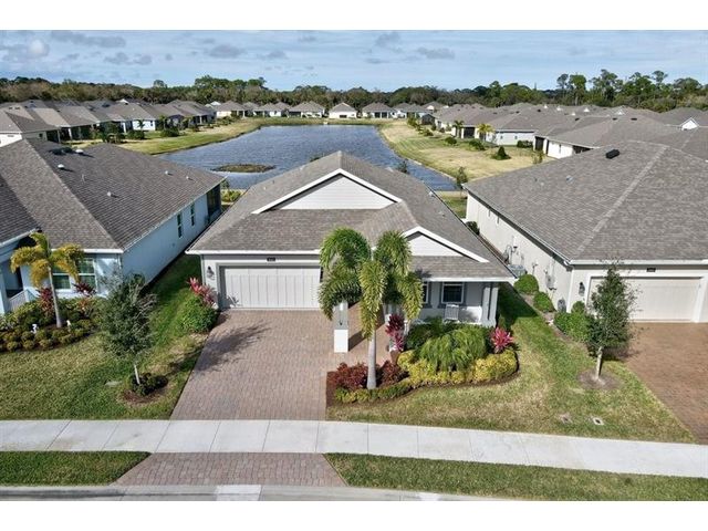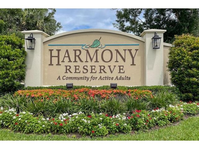 Looking to relax in a great 55+ community? Embrace this beautifully appointed 1,676 sq ft home in Harmony Reserve boasting water views from the main bedroom, living area, dining & covered screened lanai where coffee or libations are enjoyed. Built in 2023, this 3 Bed, 2 Bath home offers peace of mind with IMPACT windows, a GENERAC Generator & StormSmart hurricane screens. Add’l features include natural gas cooking, island kitchen, quartz countertops, upgraded tiles, epoxy floors in the garage & much more. Furniture is negotiable making this a great potential snowbird home or full-time residence.