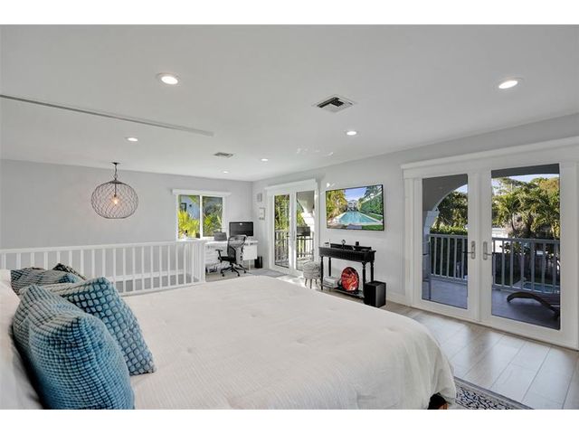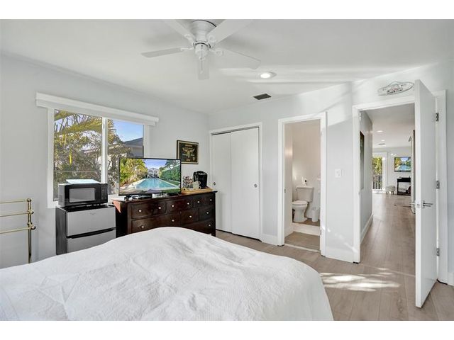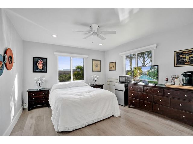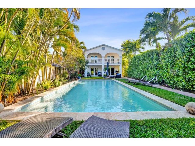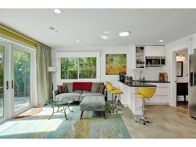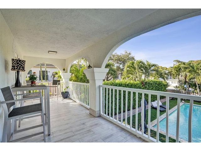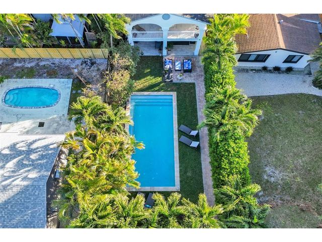 Behind the gate, this home opens to a private tropical oasis rarely found in this area. A resort-style pool anchors the front courtyard, creating a true indoor-outdoor lifestyle. The main level offers open living space with an updated kitchen and full bath, ideal for everyday living and entertaining. A separate studio suite with private entrance, full kitchen, and bath provides excellent flexibility for guests, multigenerational living, or vacation rental use. Impact windows and doors throughout ensure safety and peace of mind. Upstairs features an expansive primary suite with spa-inspired bath, walk-through closet, and large balcony overlooking the pool, plus two additional bedrooms, one with a full ensuite bath. Coming Soon—no showings until go-live date.
