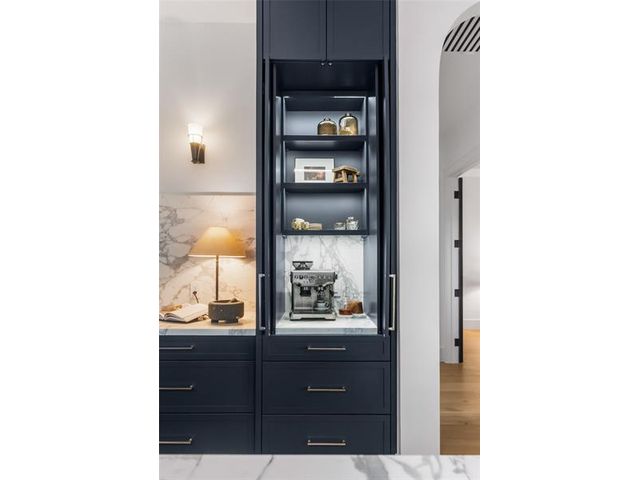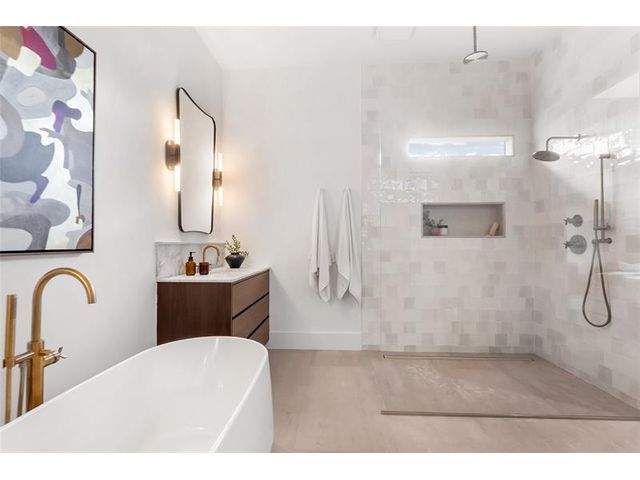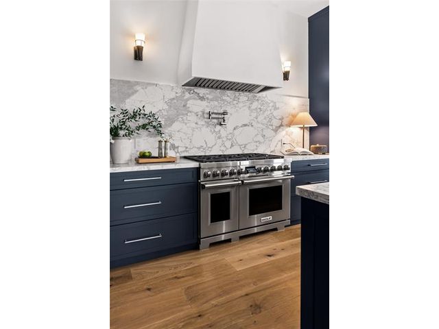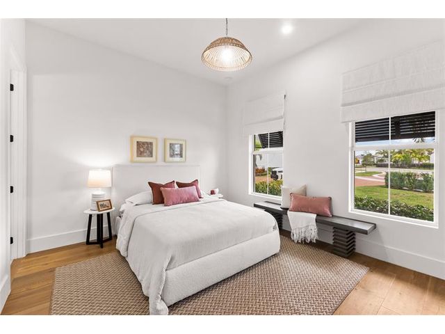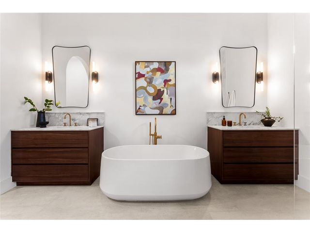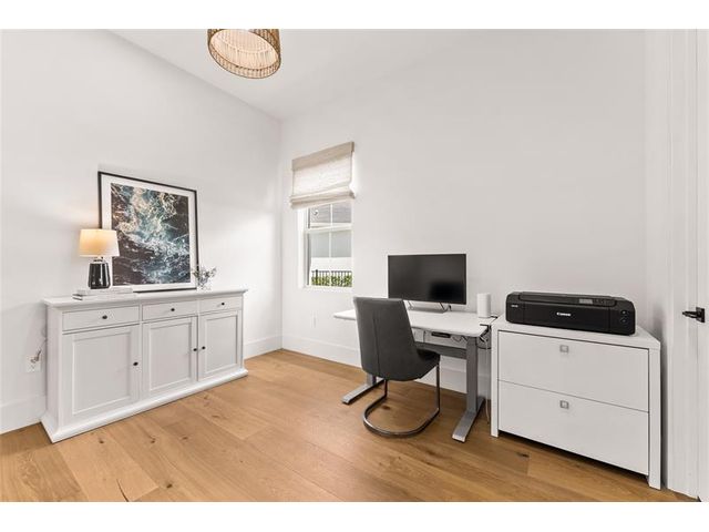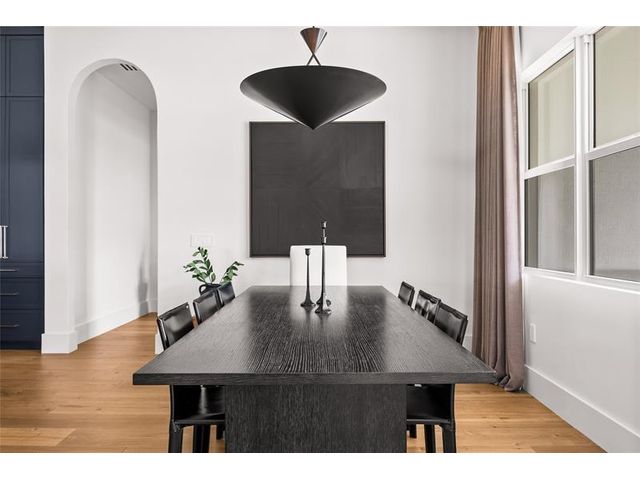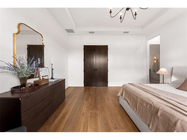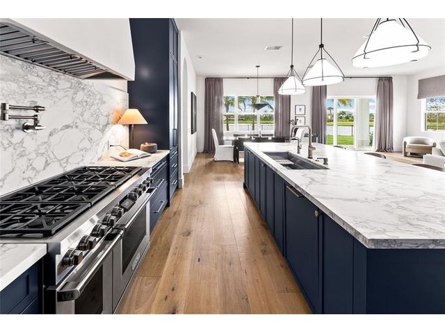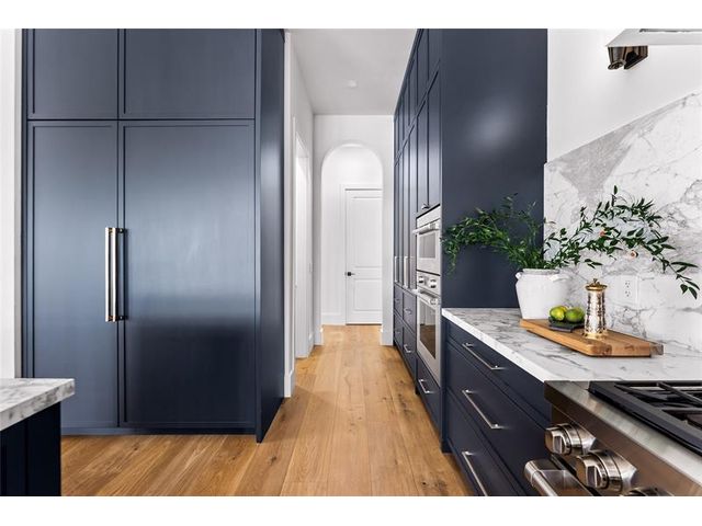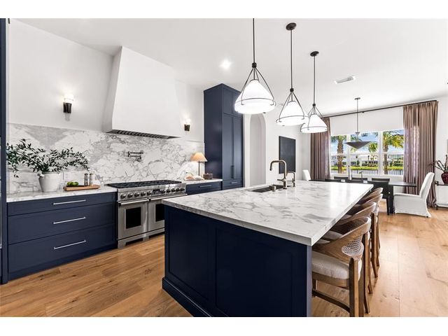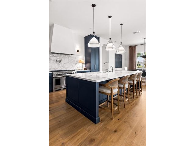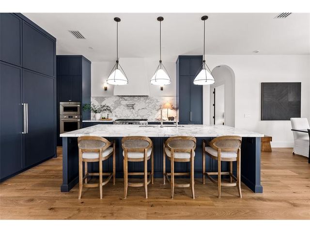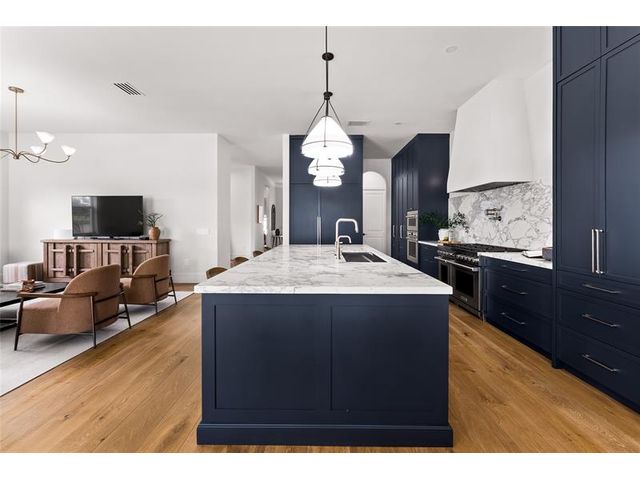 Step into a residence where every detail has been thoughtfully curated to balance modern functionality with timeless design. At its heart lies a bespoke kitchen, enveloped in Italian Statuario Belgia marble with a striking three-foot backsplash, complemented by a Sub-Zero/Wolf appliance suite, handcrafted custom cabinetry, and European white oak hardwood floors that flow seamlessly throughout the home. The primary suite offers a serene retreat, complete with travertine floors, custom dolomite vanities, a walk-in rainfall shower, and a luxury soaking tub reminiscent of a spa experience. Additionally, an expansive den offers a light-filled space ideal for a home office or study. Outside, enjoy panoramic lake views, a fully fenced yard, and the privacy of a generous one-third-acre homesite.