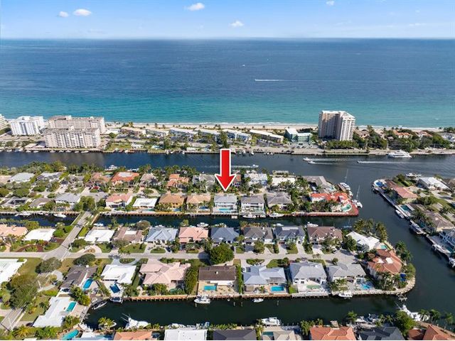 Exceptional 4BR/4BA waterfront estate in sought-after Lighthouse Point offers 90 feet of deep-water frontage just one canal from the Intracoastal & approx. 8 minute boat to Hillsboro Inlet. The home features a chef’s kitchen with Viking appliances and walk-in pantry. Home includes a large game room with wet bar and fireplace and a custom cedar storage closet. Major upgrades include a 2024 dock and seawall, full-house and dock power generator (2025), and new A/C systems (2025). The oversized, air-conditioned garage offers vaulted ceilings, custom-height doors, a dedicated storage room, and an exterior concrete storage closet. The pool deck is travertine with a pergola and retractable shade cover. Meticulously maintained and truly move-in ready in prime waterfront location.