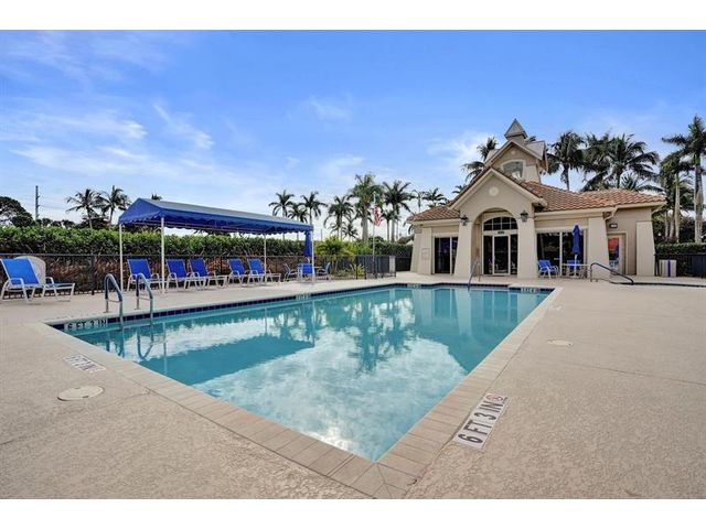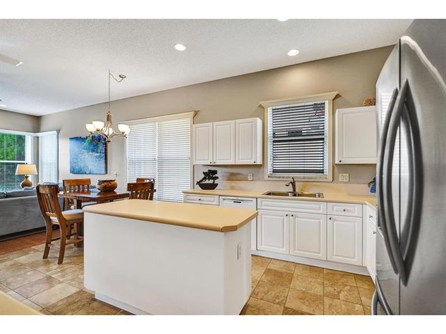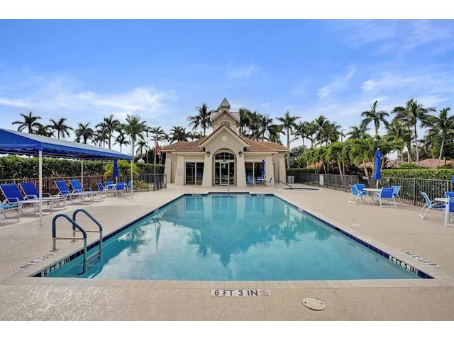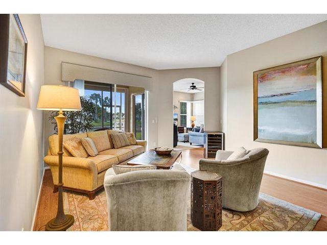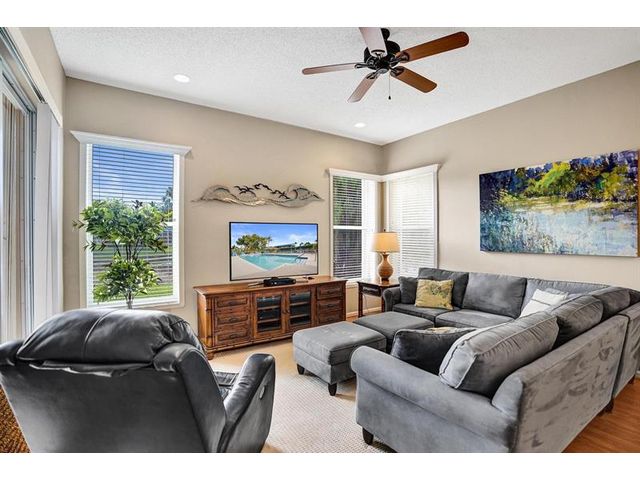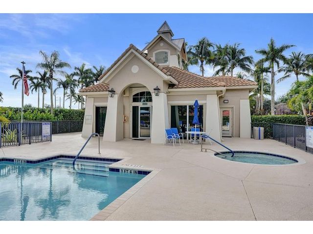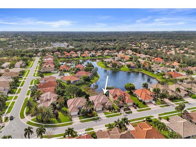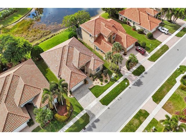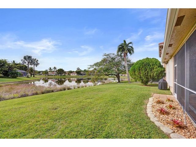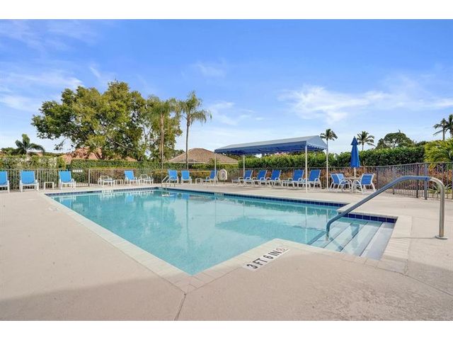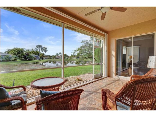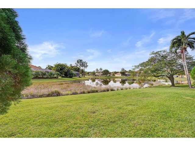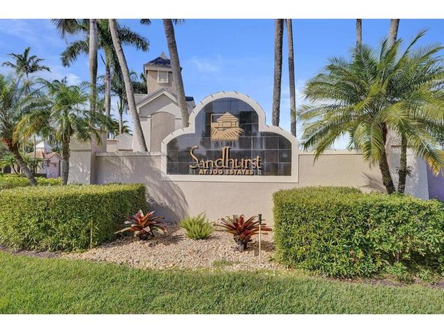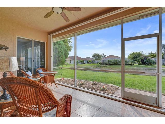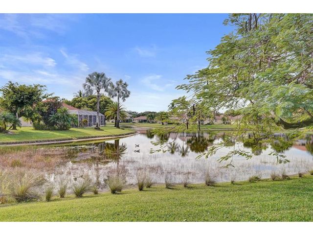 Beautiful 4BR/2BA/2CG in pristine Sandhurst 55+ community. New roof in 2025 & freshly painted exterior. Volume ceilngs into formal dining & living area. Cozy family rm & spacious kitchen w/cooking island & tons of cabinet space. Split BR flr plan. Walk-in closet & priv. bath w/sep. shower & roman tub in primary. 4th BR utilized as den off the primary is perfect home office space w/water view. Screened patio. Sep. laundry rm. Accordion shutters. Well maintained community is sought after for low HOA, offering a renovated clubhouse, sparkling pool, hot tub, fitness center, tennis court & security gated entry. No weight limit on pets! Publix is just next door & close to many public & priv. club membership golf courses. Quick ride to gorgeous tropical beaches, sun & fun, nightlife & shopping.