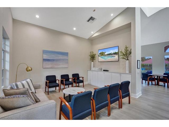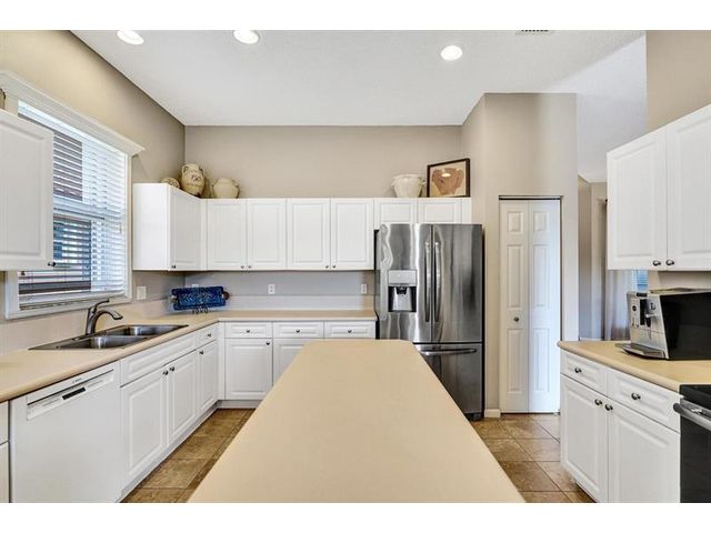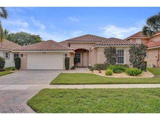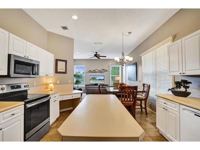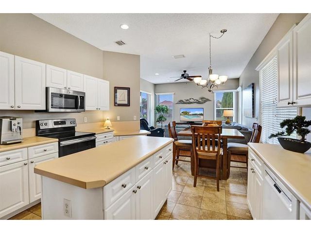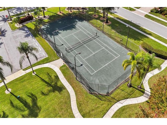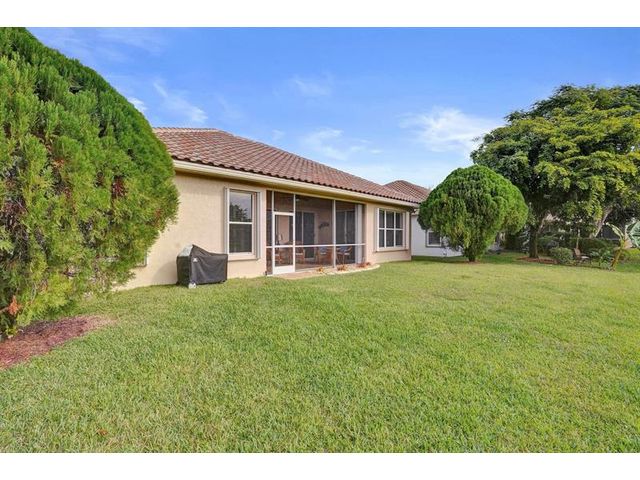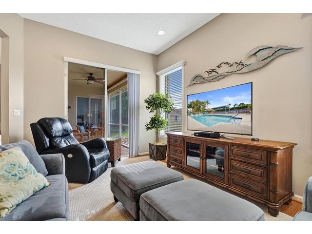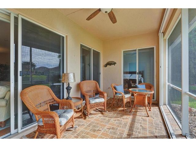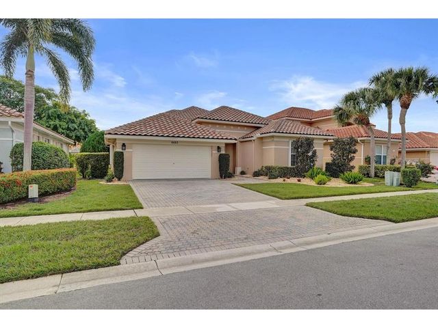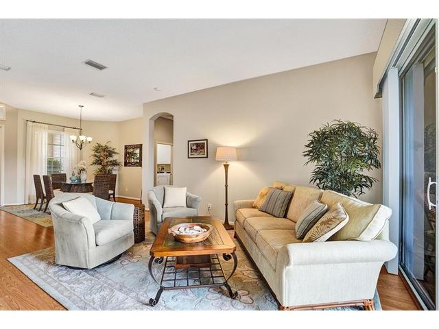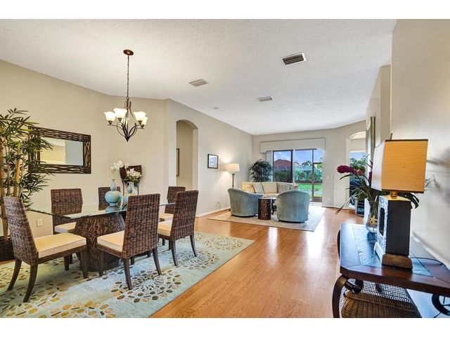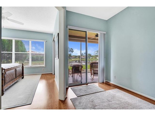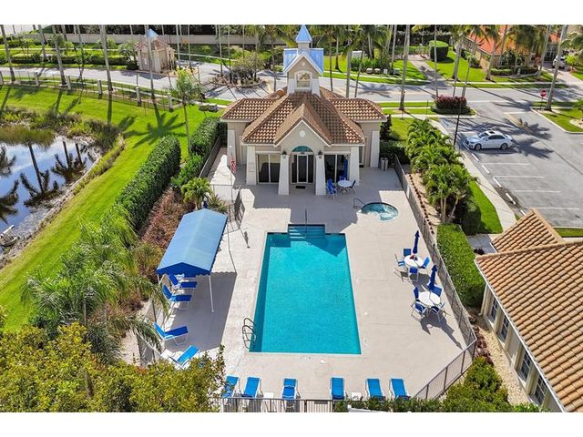 Beautiful 4BR/2BA/2CG in pristine Sandhurst 55+ community. New roof in 2025 & freshly painted exterior. Volume ceilngs into formal dining & living area. Cozy family rm & spacious kitchen w/cooking island & tons of cabinet space. Split BR flr plan. Walk-in closet & priv. bath w/sep. shower & roman tub in primary. 4th BR utilized as den off the primary is perfect home office space w/water view. Screened patio. Sep. laundry rm. Accordion shutters. Well maintained community is sought after for low HOA, offering a renovated clubhouse, sparkling pool, hot tub, fitness center, tennis court & security gated entry. No weight limit on pets! Publix is just next door & close to many public & priv. club membership golf courses. Quick ride to gorgeous tropical beaches, sun & fun, nightlife & shopping.
