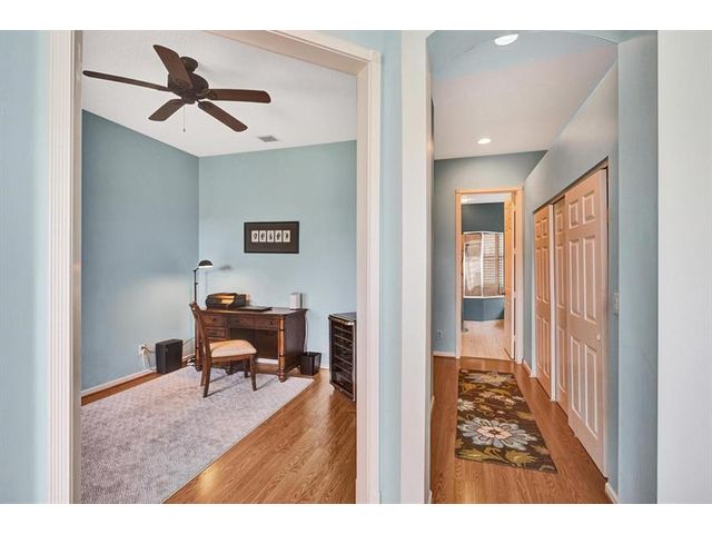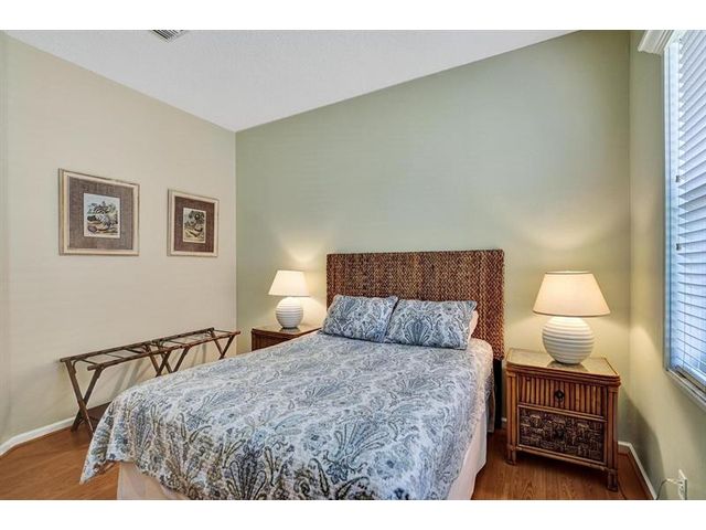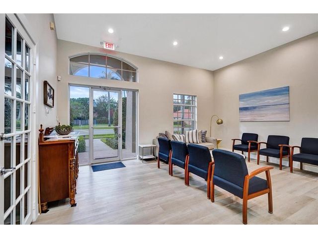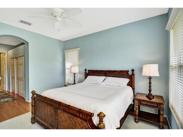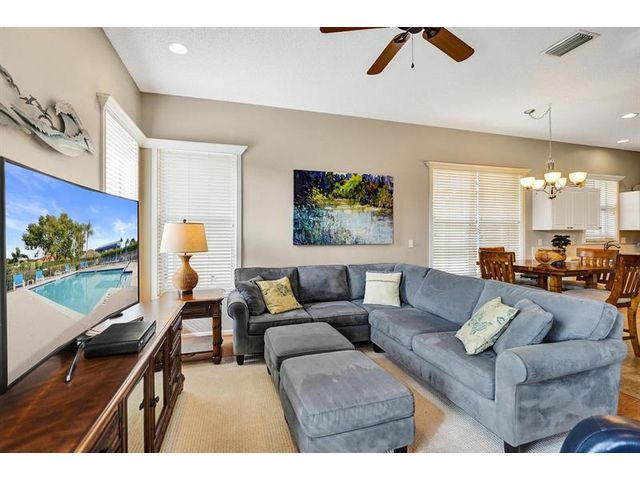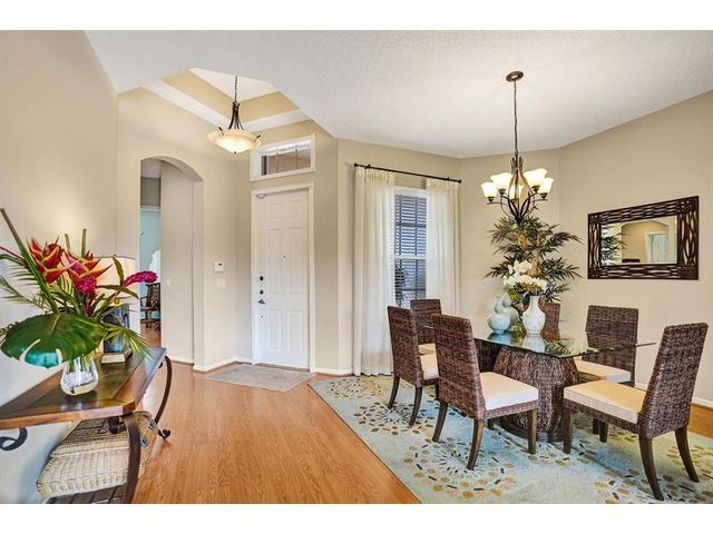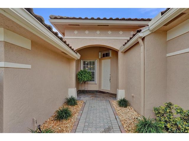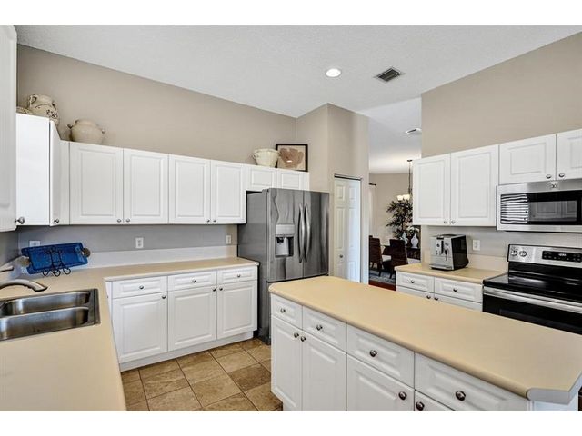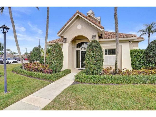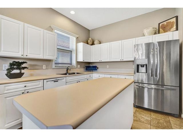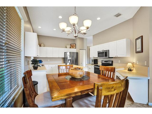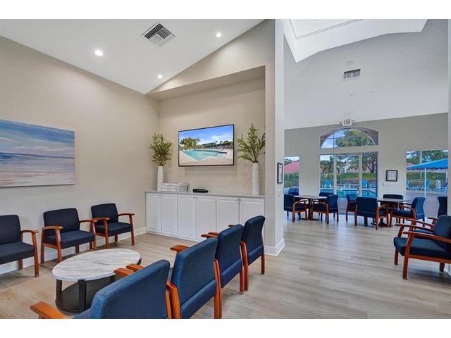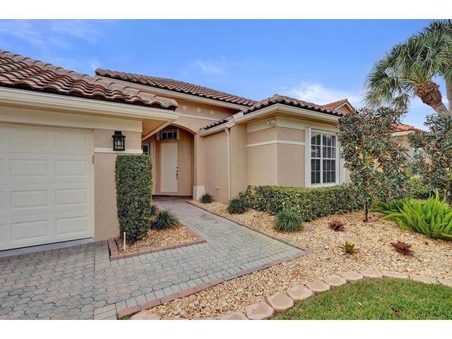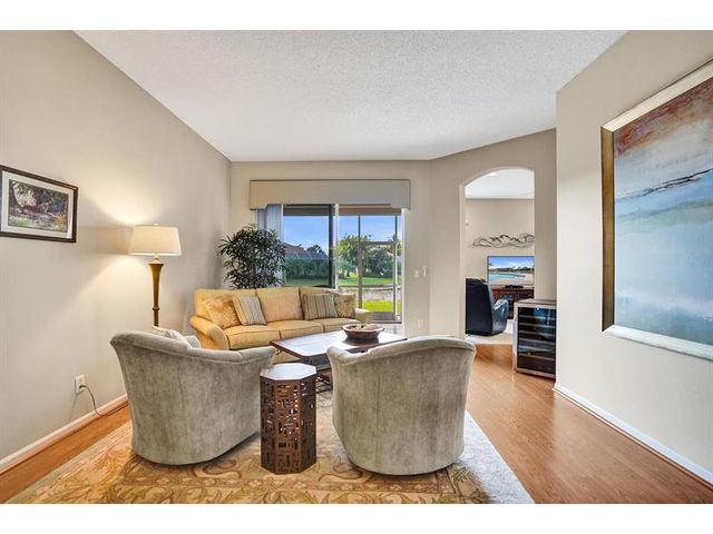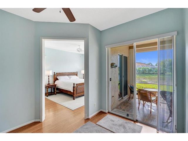Beautiful 4BR/2BA/2CG in pristine Sandhurst 55+ community. New roof in 2025 & freshly painted exterior. Volume ceilngs into formal dining & living area. Cozy family rm & spacious kitchen w/cooking island & tons of cabinet space. Split BR flr plan. Walk-in closet & priv. bath w/sep. shower & roman tub in primary. 4th BR utilized as den off the primary is perfect home office space w/water view. Screened patio. Sep. laundry rm. Accordion shutters. Well maintained community is sought after for low HOA, offering a renovated clubhouse, sparkling pool, hot tub, fitness center, tennis court & security gated entry. No weight limit on pets! Publix is just next door & close to many public & priv. club membership golf courses. Quick ride to gorgeous tropical beaches, sun & fun, nightlife & shopping.