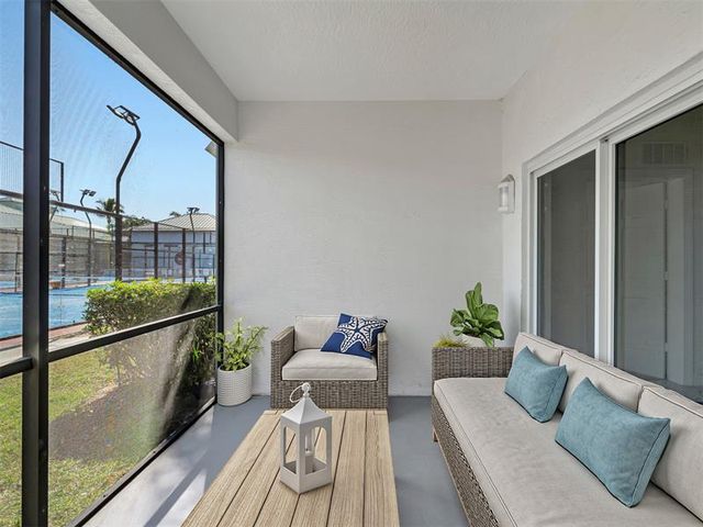 Welcome to this beautiful 3/2 condo offering a rare view of both padel and tennis courts. Enjoy your morning coffee or unwind in the evenings while overlooking the action from the comfort of your own screened patio. Spacious bedrooms provide flexibility for guests or a home office while the primary suite offers a private retreat with a large bath tub. Club memberships are required and offer padel, tennis, a fitness center and resort style pool. Check out the padel grill restaurant just steps from your home! This condo delivers a blend of energy, comfort, and convenience in an unbeatable location.