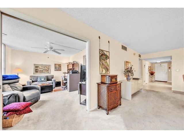 Turnkey Palm Aire condo w/ beautiful golf course views. Welcoming foyer entry, IMPACT windows, & full-size stackable washer & dryer. Unit includes a floor safe & furniture (exclude artwork, stained glass hangings, bronze bird lamp, breakfront). Lovingly maintained & owned by only 2 families. Both bathrooms have showers. $769 Assn fee includes 1 assigned parking space & storage unit, water, Cable, Internet, trash, & sewer. Enjoy resort-style amenities incl. 2 pools, BBQ grills, pickleball/tennis courts, playground, basketball, & jogging path. Secure lobby w/security patrol. Assn requires minimum 690 credit score and own 1 year prior to renting. Recent updates include a renovated lobby with new impact doors (2023), new building roof (2025), 40-year certification passed, and SIRS completed.
