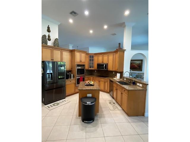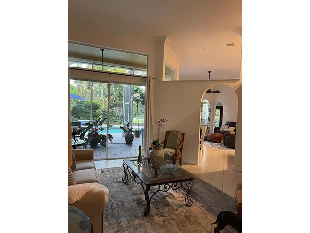 Welcome to your new home. Beautifully appointed 4-bedroom, 3-bathroom home with an additional den/office/library, featuring elegant crown moldings and baseboards throughout. The home boasts two recently remodeled bathrooms and is located in the desirable, gated Windsor Bay community. Set on an expansive 11,000+ square-foot lot, the lush outdoor space is a true tropical retreat, showcasing exotic fruit trees including avocado, mango, custard apple, coconut, plum, and soursop, along with vibrant tropical flowering plants.