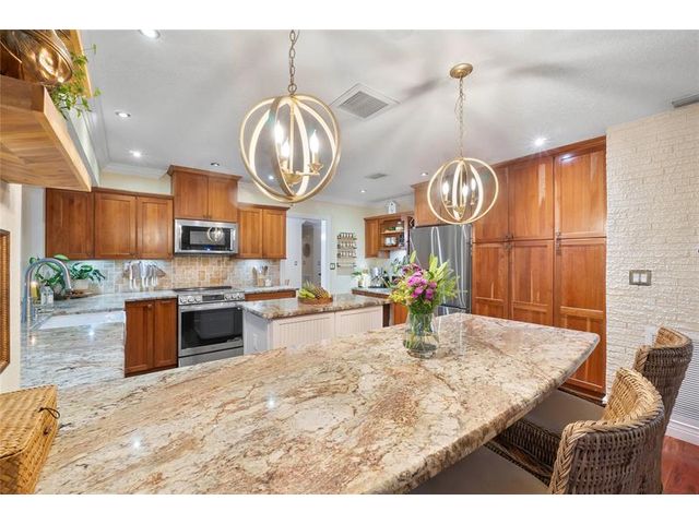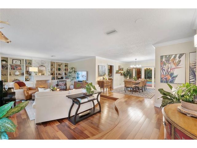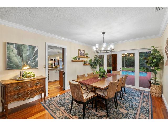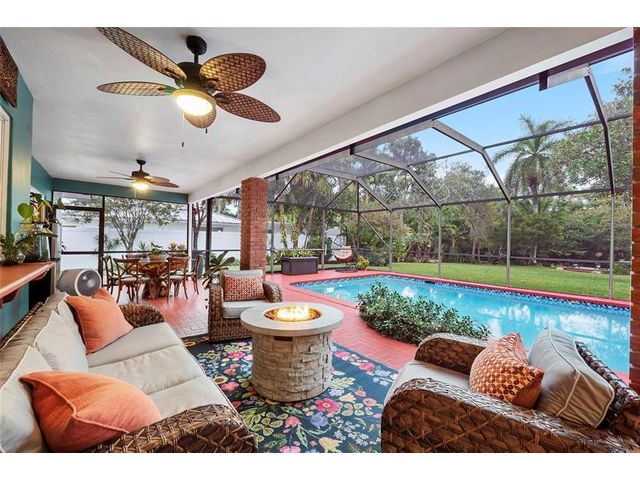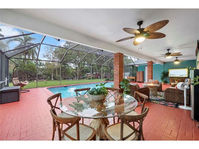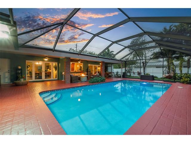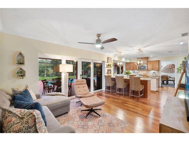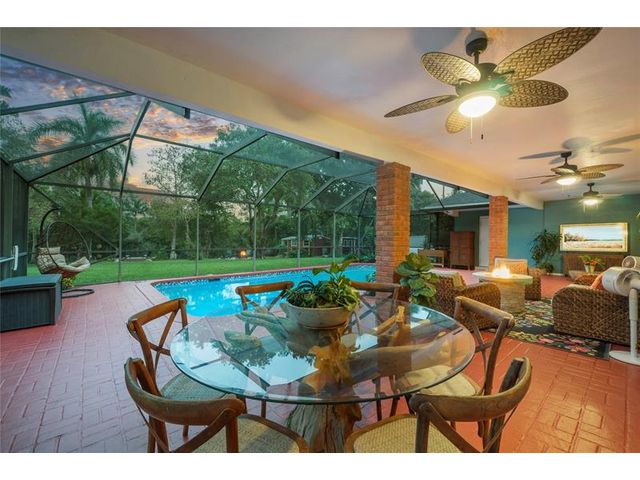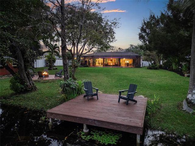 Experience classic South Florida living in this single-story colonial ranch with tranquil water views and a private dock. Brazilian Tigerwood flooring flows throughout, complemented by natural wood cabinetry and stone finishes in the kitchen and baths that give the home timeless character. Relax in the formal living room with a cozy faux fireplace and craftsman-built shelving, or retreat to the screened-in patio overlooking an oversized saltwater pool for seamless indoor-outdoor living all year round. Vintage charm meets modern peace of mind with a 2025 roof, fence and appliances; 2019 AC and impact windows. ROOM TO PARK YOUR BOAT! Minutes to Plantation Preserve Golf Course, trails, parks, Whole Foods, Trader Joe’s, dining, major retail, and all highways, all under 7 minutes.