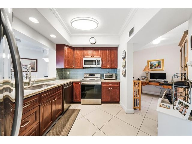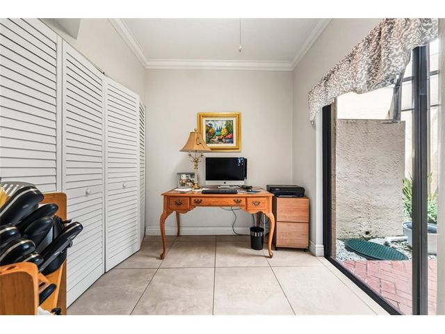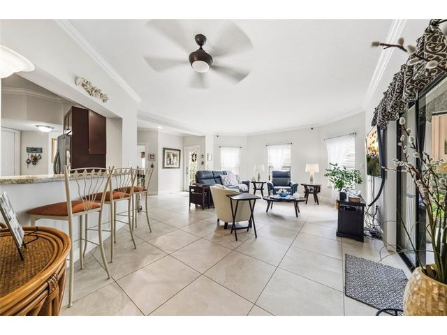This is it! Lovely first-floor, corner unit in desirable Villa Sonrisa of Boca Pointe Pointe. This spacious unit is uniquely situated for those who love natural light and the outdoors...featuring two enclosed patios, including a sun-soaked atrium, as well as a wrap-around porch; and windows/sliders in nearly every room! Enjoy the split bedroom plan, including a third room that can serve as a lovely office or den! Outstanding features include large, open kitchen w/ stainless steel appliances, granite countertops & raised wood cabinets; 24x24 tile floors in living areas & wood flooring in bedrooms; newer appliances; newer roof interior laundry; walk-in closet, single-car garage w/ direct entry to home/patio, & more! Highly-sought, guard-gated Boca Pointe offers optional club membership.