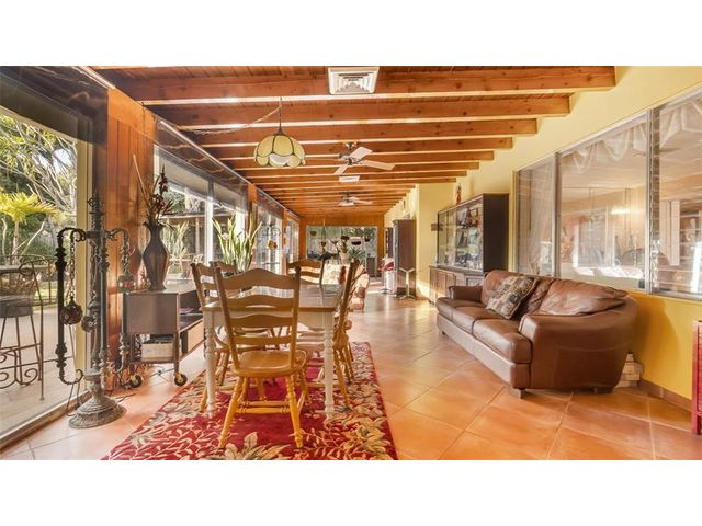 Discover a rare opportunity to own a 5-bedroom, 4-bath single-story home on a true builder’s acre in desirable Biscayne Gardens. Situated on an expansive 30,000+ sq. ft. lot with lush landscaping and mature fruit trees, this impressive residence offers approximately 3,901 sq. ft. of living space filled with abundant natural light and classic terrazzo flooring. The roof was replaced in 2020, providing added peace of mind. Enjoy the inviting sunroom featuring beautiful wood-beam ceilings. The property also includes two private units, ideal for in-laws quarters or rental income. A unique offering with exceptional flexibility and outstanding potential.