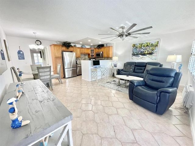 BEAUTIFULLY REMODELED 1 bedroom, 1.5 bath condo on the 2nd flr featuring an OPEN-CONCEPT FLR PLAN. The lt & bright liv space has plantation shutters, IMPACT WINDOWS & tile flrs thru-out. Unit is UNFURNISHED (photos for staging only). The upgraded kit offers granite cntr tops, ss appl, recessed ltg, generous counter space, & a pantry. Primary bath is stylishly updated w/a shower stall & glass shower doors. Enjoy a tranquil garden view from encl patio. Bldg. has a NEW ROOF! Ideally located walking dist to the plaza & pool! This vibrant 55+ gated community offers RESORT STYLE LIVING at its finest w/full amenities, community buses, clubhouse, pools, pickleball, tennis, putting green, gym, billiards & more! Only 10 min from the beach & close to shopping! Your paradise awaits. ASSOC. CLAIMS 55+