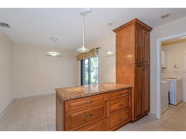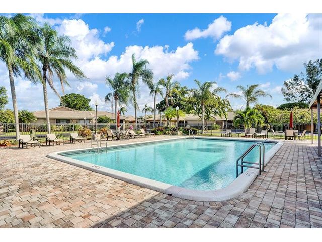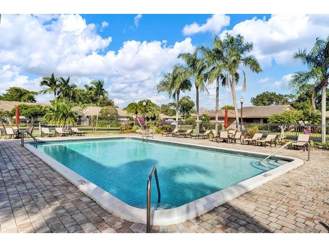 Located in a Gated Community, this well-appointed Villa offers a prime Location with panoramic Golf Course views and abundant guest parking. The open and airy floor plan creates an inviting atmosphere from the entry, with expansive views throughout the main living areas. A flexible Bonus Room may be utilized as a Home Office, or Family Room. The freshly painted interior features an upgraded Kitchen with Wood Cabinetry, Granite Countertops, and additional built-in storage including a Pantry. Additional features include a two-car Carport with ample Storage, hurricane accordion shutters, space for large backyard future Patio build-out. This convenient location just steps away from the Community Pool.