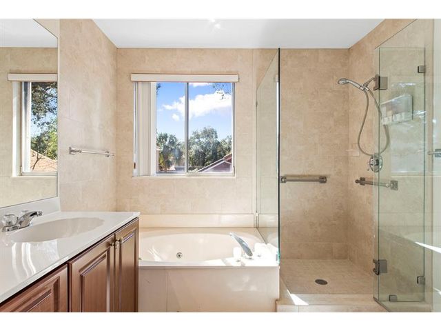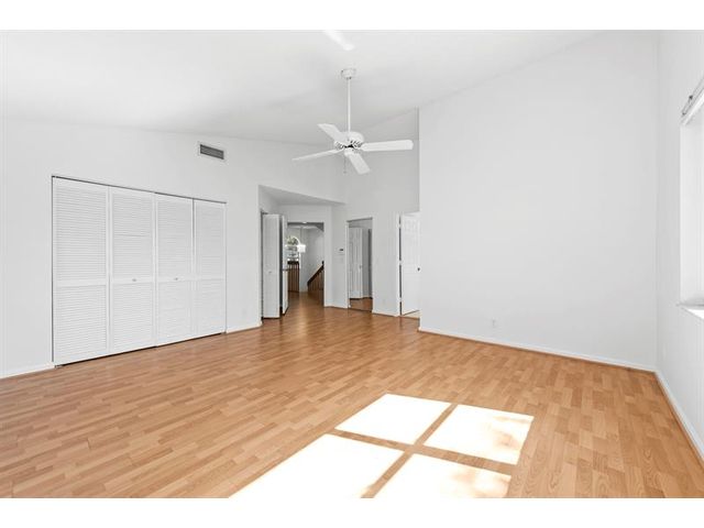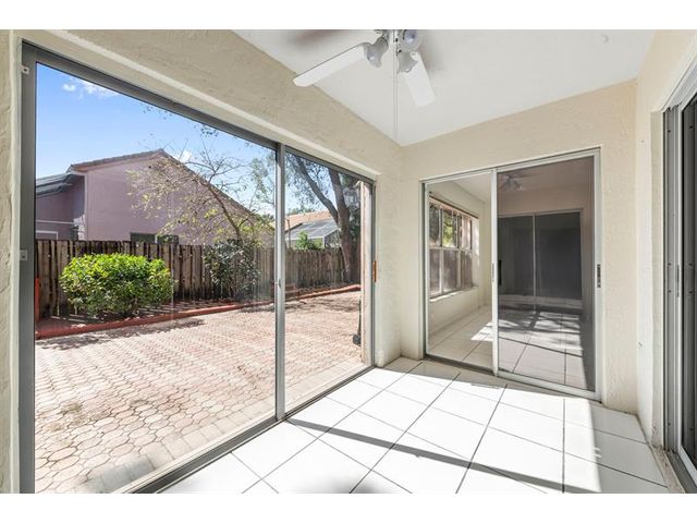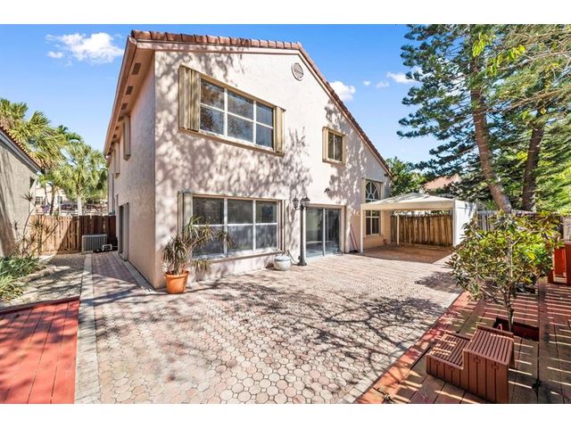 This light-filled home welcomes you into a spacious living room with soaring, voluminous ceilings and a freshly painted interior. Offering 3 bedrooms, 2.5 baths, plus an office/den that can easily convert into a 4th bedroom. The layout is both flexible and functional. Enjoy abundant parking with a beautifully pavered driveway, entry walkway, and fenced backyard—perfect for low-maintenance outdoor living with exceptional privacy. Additional highlights include accordion shutters, ample storage throughout, and an interior laundry room with newer washer and dryer. Located in a beautiful community just steps from the lakefront pool and city park, this home blends comfort, convenience, and lifestyle.