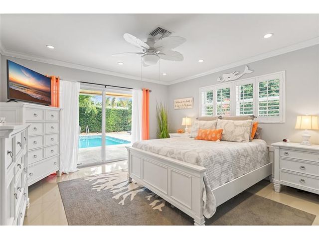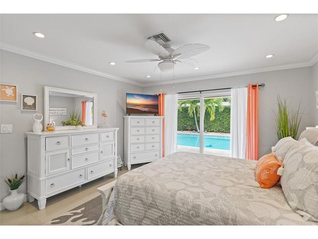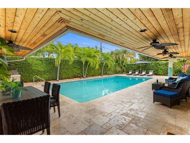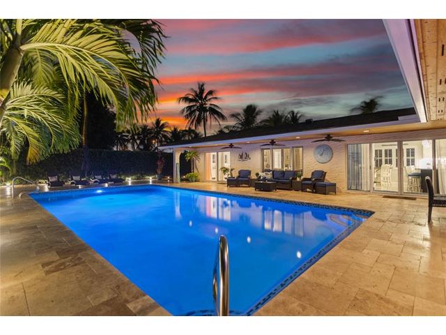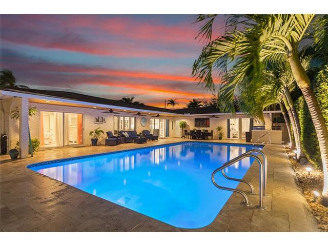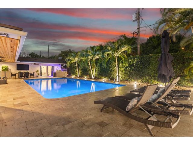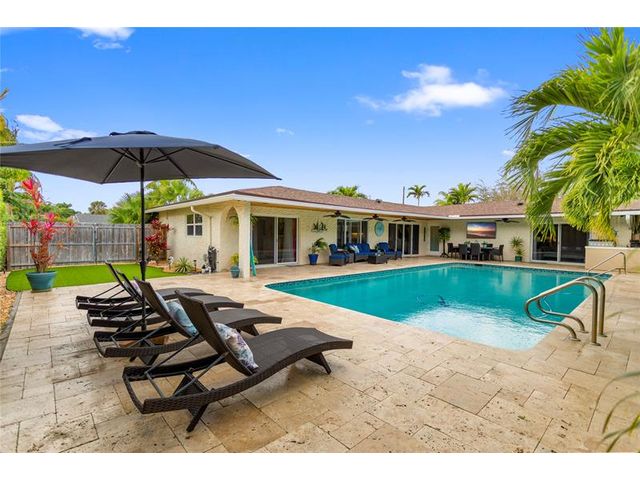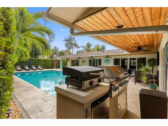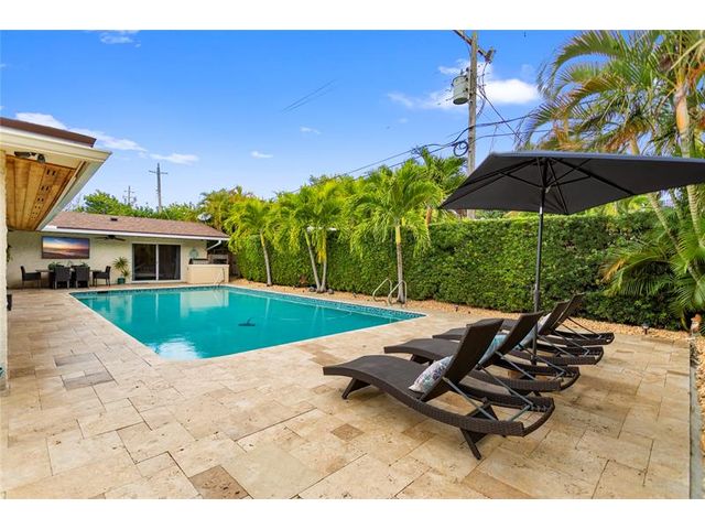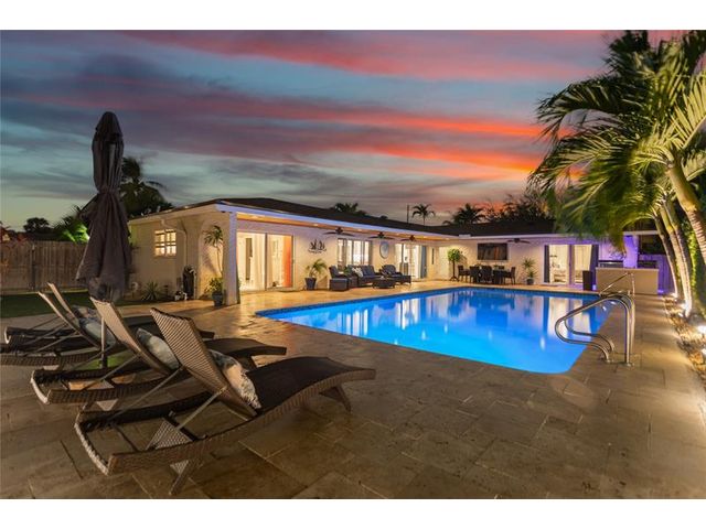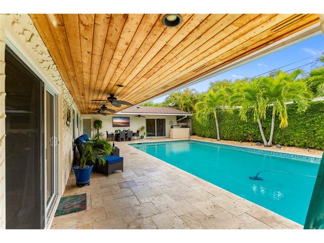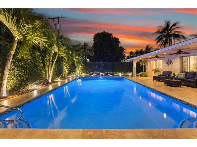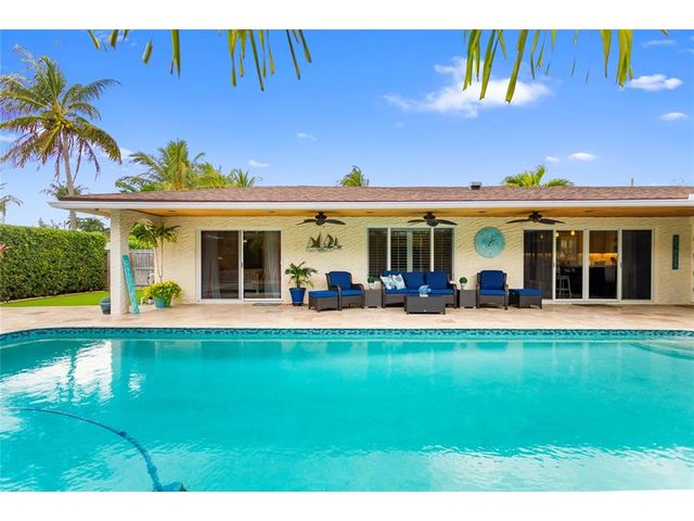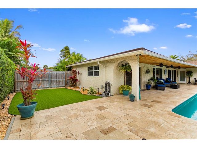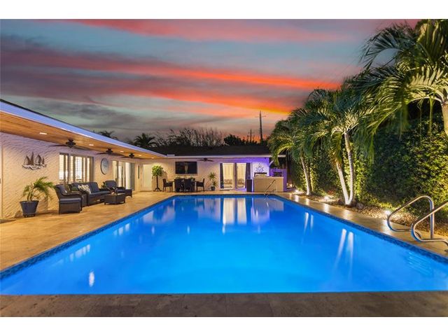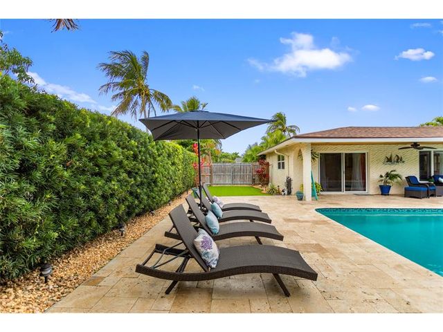 This beautifully remodeled, spacious and bright residence sprawls on a full quarter acre of land. Nestled in quiet, family neighborhood, but in close proximity to the beaches, golf courses, tennis and pickleball courts, fitness clubs, world class entertainment, shopping and restaurants. Fully fenced and tall shrubs protected, private backyard is perfect for relaxing time and entertaining. Walking distance to the Intracoastal and public boat ramp. Many upgrades and features include new roof (2025), new driveway (2021), all impact windows and doors, 20'x40' salt water pool with a new pump (2025), new A/C (2023), putting green and pet friendly turf area. Come and experience the offerings of sunny South Florida.