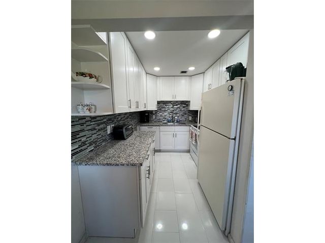 Welcome home to this two-bedroom, one-and-a-half-bath condo located on the second floor of a well-maintained two-story building. This light & bright residence features stunning white tile flooring throughout. The remodeled kitchen has white shaker cabinetry, granite countertops, white appliances, recessed lighting and an elegant backsplash, creating a fresh and inviting space. The primary bathroom has also been remodeled with a walk-in shower. Condo is being sold partially furnished. The new Richmond pool is in front of the building! Ideally located close to the Military Trail gate of Century Village for easy access. Century Village has resort-style amenities to include a clubhouse, theater, indoor and outdoor pools, restaurant, pickleball, tennis & so much more. Move right in!