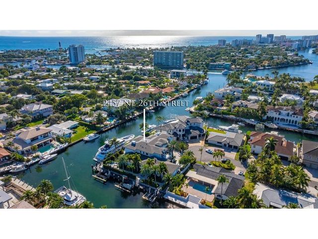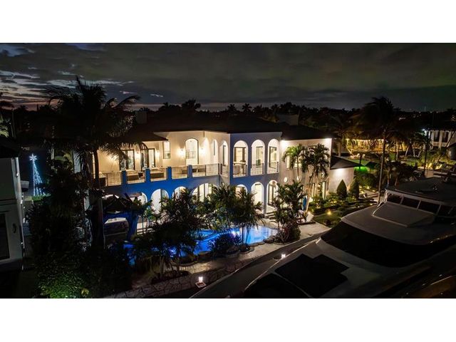 The ULTIMATE YACHT HOME BASE in Lighthouse Point! Completely redesigned and remodeled in recent years, this stunning waterfront estate offers dockage for up to a 145’ yacht plus an additional 135’ with three boat lifts for tenders and toys, all less than a 5-minute cruise to open ocean. The home features 5 bedrooms plus office and theater, 6 full baths and 1 half bath. A spectacular new kitchen with island and state-of-the-art appliances opens to the family room and breakfast area. VIP suite on the first floor, expansive primary suite upstairs with sitting area, and three additional ensuite bedrooms. Incredible outdoor living includes a huge covered patio with summer kitchen, fireplace, cabana bath, resort-style pool with water features, multiple seating areas, fountains, and fire pit.