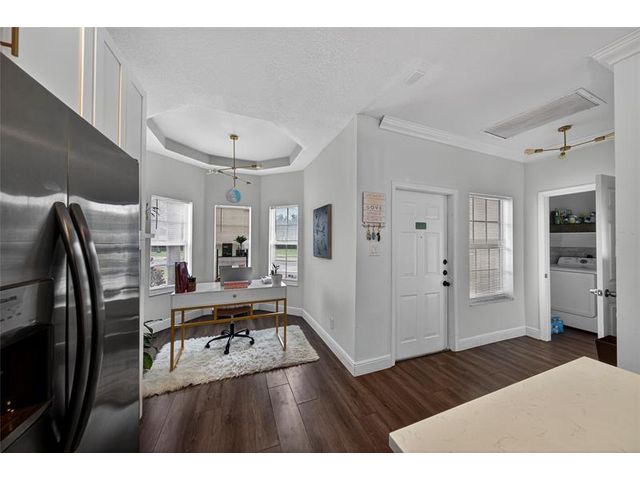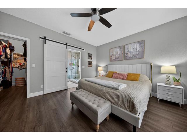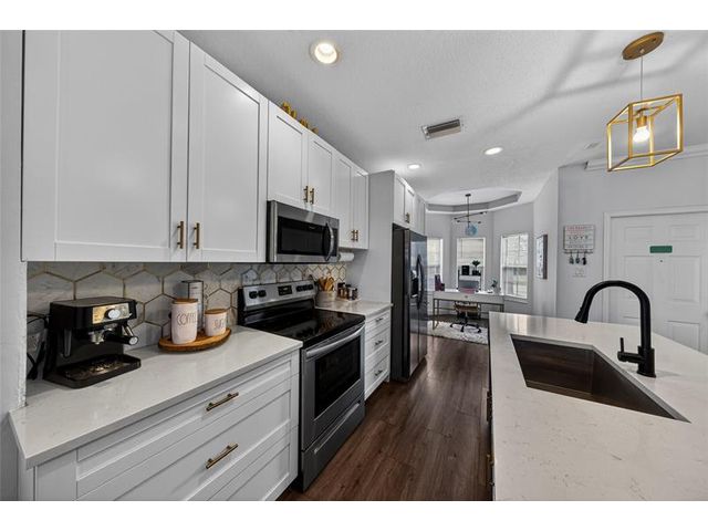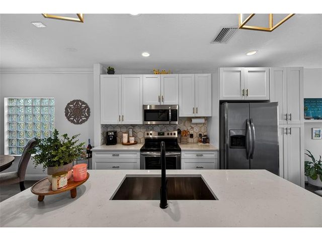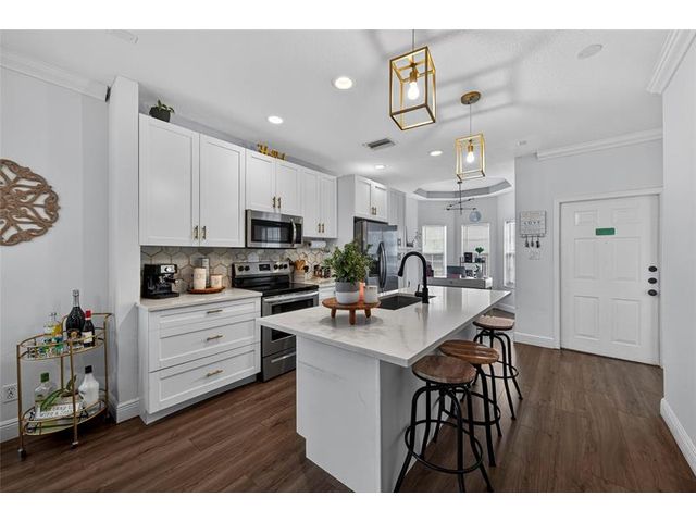 Welcome to 6435 Egret Terrace, a completely remodeled residence offering comfort and functionality in the highly desirable community of Regency Lakes. This 3-bed, 2-bath home features a bright, open layout with generous living areas and a split floor plan, ideal for everyday living and entertaining. The kitchen offers a large island, ample cabinetry, quartz countertops, stainless steel appliances, and an alcove area that can be used as a breakfast nook or a home office. The primary bathroom boasts a large shower with double shower heads, dual sinks, and modern finishes. Enjoy outdoor living with a large, covered patio and a fenced backyard. A laundry room and a 1-car garage complete this gem of a home, on a corner lot, across from the pool and tennis courts. 24-hr manned security. Low HOAs