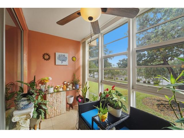 Beautifully remodeled, 55+ TURNKEY condo with porcelain tile floors laid diagonally. Kitchen has wood cabinetry, granite counter tops, pendant lights and stainless appliances, including a new fridge. Split floorplan. Both master and guest room have walk in CALIFORNIA closets. MURPHY BED in guest bedroom. Master bath has beautiful bowl sinks and walk in shower, while guest bath has a tub. Enclosed patio incorporated into unit. IMPACT WINDOWS. AC 6 years old, WH 1 year. Take the furniture if you like, if not, seller will remove. This senior community lacks for no activity with too many amenities and clubs to mention here including pools, fitness center, library, laundry. Low monthly fee includes water. Close to shopping, highways, restaurants, stores. Be at the beach in 30 mins.