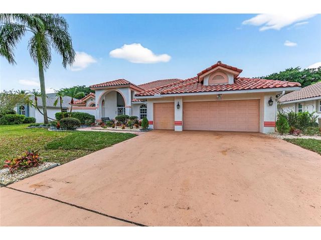 Casual elegance is evident the moment you enter this stunning 3-bedroom plus den, 3.5-bath residence. SOARING CEILINGS and an open-concept seamlessly connects the expansive living and dining areas to the outdoors. The oversized patio—protected by IMPACT-RATED SCREENS — along with the resort-style pool, offers endless opportunities to embrace the Florida lifestyle. Equipped with every premium upgrade, including IMPACT WINDOWS and DOORS all around, a 24/7 WHOLE HOUSE GENERATOR, and a gas kitchen featuring two KitchenAid ovens, granite countertops, and an on-demand water heater. A 2.5-car garage provides ample space for both your vehicle and golf cart. Located within Boca Greens Country Club, this exceptional property delivers comfort, functionality, and effortless luxury.