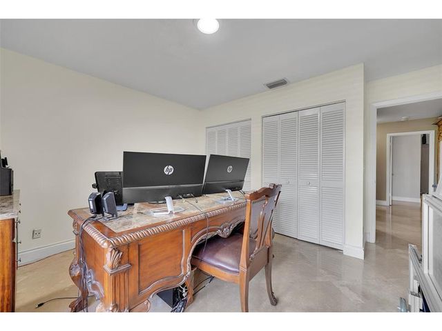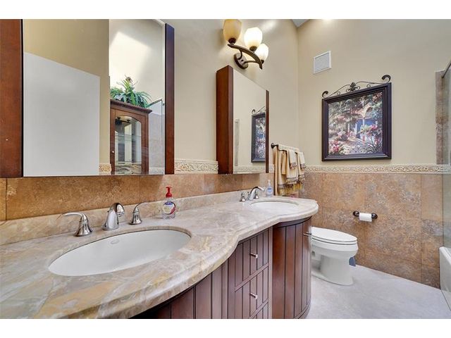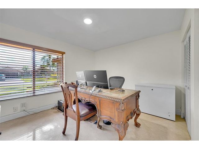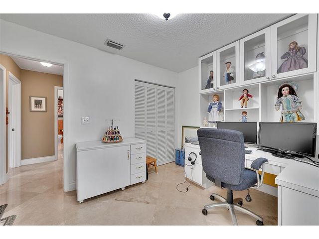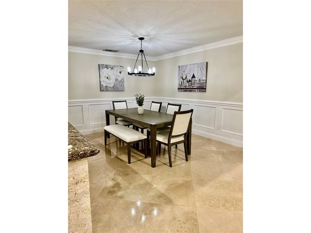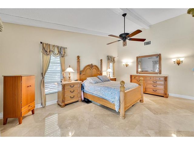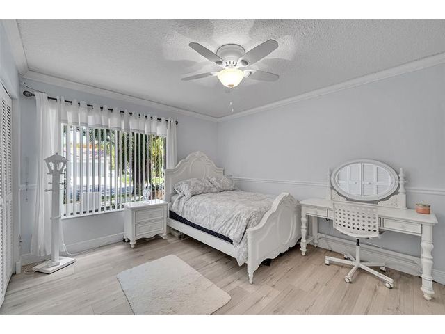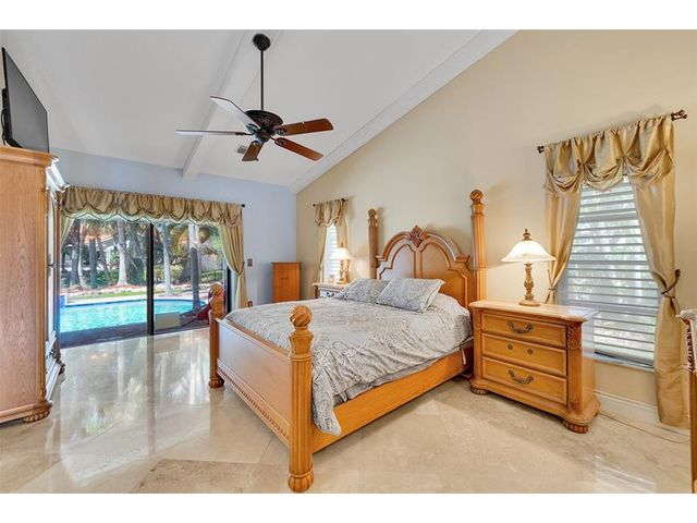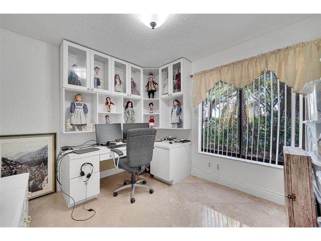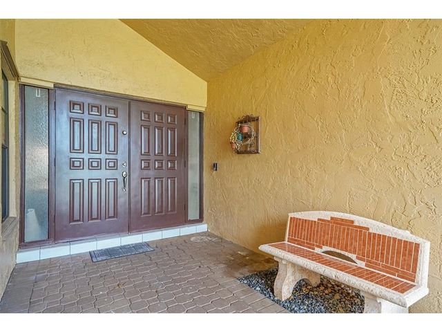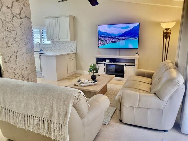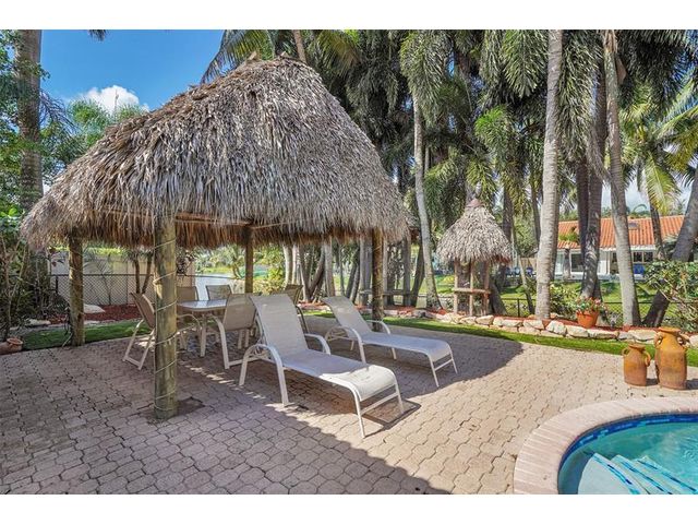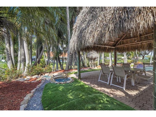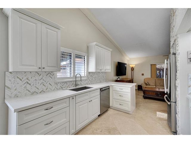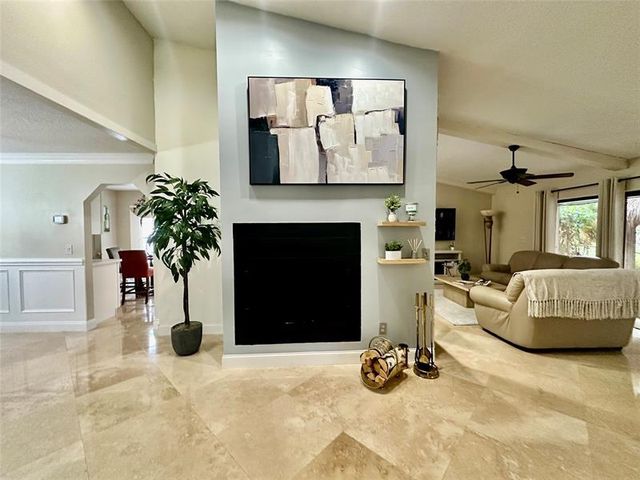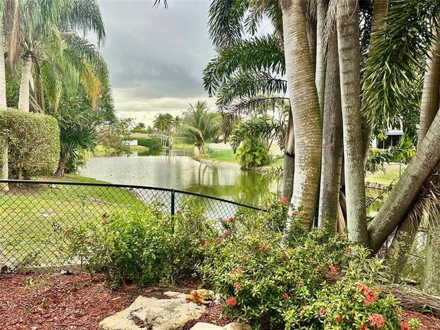Run to this stunning gem in the newer section of Jacaranda Lakes! Situated on a prime corner lot, this home offers a breathtaking view and exceptional upgrades throughout. Enjoy a newly renovated kitchen featuring quartz countertops, newer appliances, and a dual-zone wine cooler designed for both red and white wines. The home showcases elegant travertine marble floors, hurricane-protected skylights in the kitchen and bathrooms, a newer fireplace, custom wood paneling in the dining room, and Plantation shutters in the kitchen. Additional features include a Garagetec system with custom cabinetry, a charming tiki hut, and a spectacular backyard with an in-ground pool with a cascading waterfall and color-changing fiber-optic lighting. Artificial turf adds to the low-maintenance outdoor appeal.