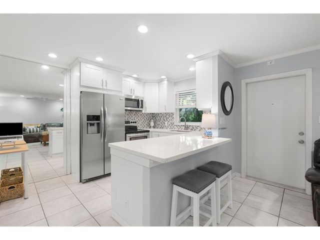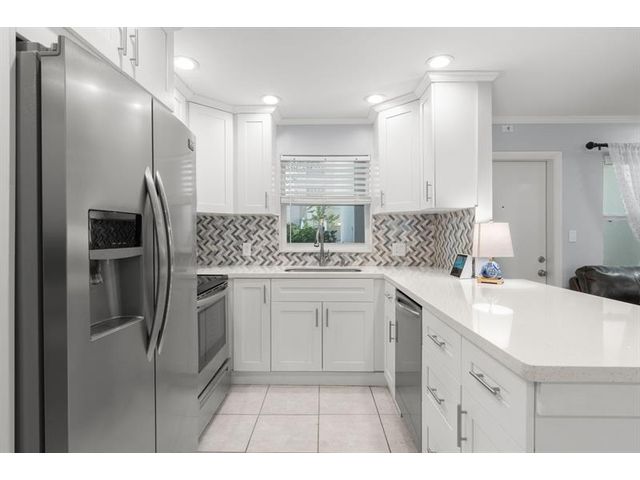 A relaxed Florida lifestyle and exceptional value await in this beautifully renovated Pompano Beach residence within the respected, well-managed Casa La Quinta waterfront condominium community. This 2-bedroom, 2-bath home offers a white kitchen with quartz countertops, stainless appliances, and a designer backsplash, updated bathrooms, custom cabinetry in the walk-in closet, and ceramic tile throughout. Residents enjoy a serene pool setting, walking trails, a community room, an exercise area, and the convenience of a nearby laundry room or may install their own washer and ventless dryer using approved contractor. Stroll to casual and upscale local dining. Just minutes from the beach, fishing pier, and Intracoastal access. Dockage is available to rent along the scenic, mangrove-lined canal.