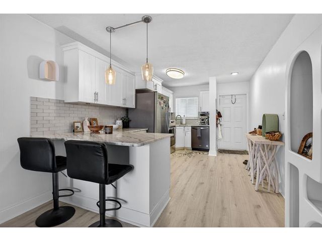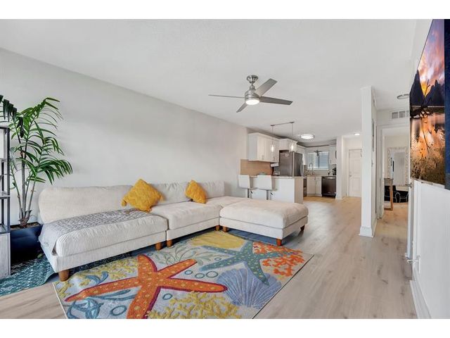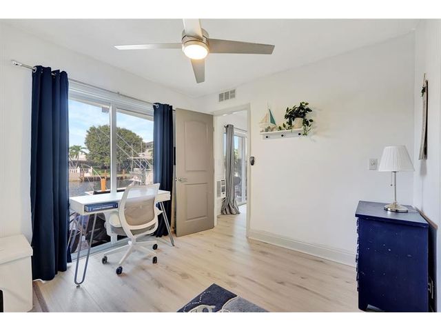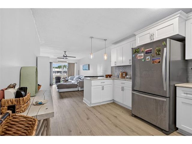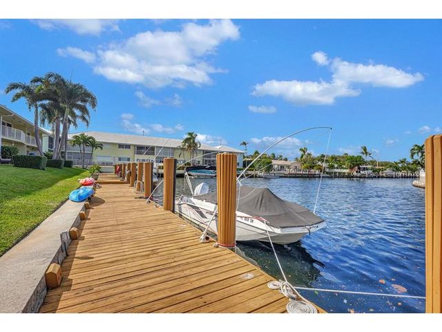 Hidden Gem on canal with direct ocean access and boat dock right out your door!!. Renovated Kitchen boasts shaker cabinets, quartz countertops and newer appliances. Serene views of the canal. Enjoy the ground level patio for outdoor living space, just steps to the docks and pool. Relax watching the sunrise or the boats go by. Spacious Bedrooms with double closet space. The unit has new luxury vinyl throughout. Rare unit with washer and dryer hook up. Impact sliding doors and windows. New AC. Unit includes a storage unit. and low maintenance includes building exterior, roof, insurance and water, sewer and trash removal. Dock space upon availability for up to 32' boat. No bridges, just a straight shot to the intercoastal. Perfect location and best views. No min down payment! Rent right away