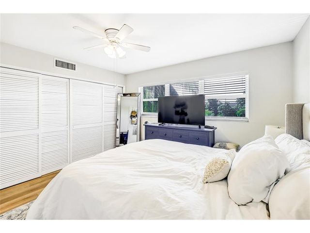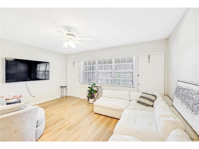 This pretty condo has been completely renovated from top to bottom! Featuring LVT wood flooring throughout, new kitchen, new appliances, new bathroom, new fixtures, new lighting and blinds. New A/C and new Hurricane Impact windows for your safety and protection. Premier location in the D building provides optimum views of the resort like pool and garden setting. Gorgeous park like grounds, heated resort style pool and hot tub! BBQ area with covered patio to enjoy the South Florida life style. Close to lots of great restaurants, shopping and the beach! Cable and internet included in the low monthly fee. 1 assigned parking space. Owner financing available