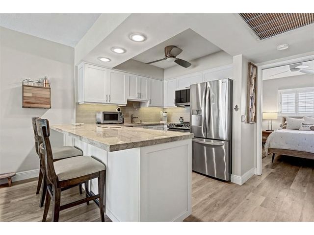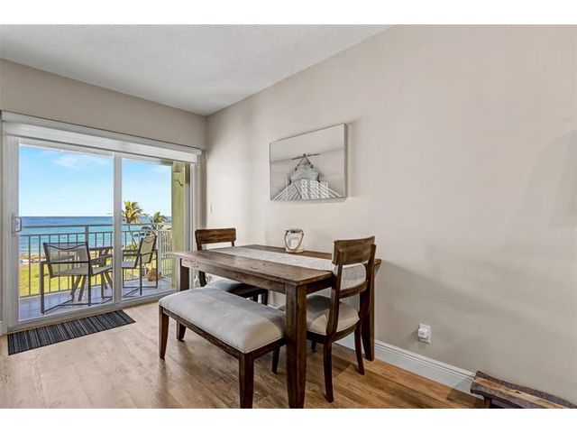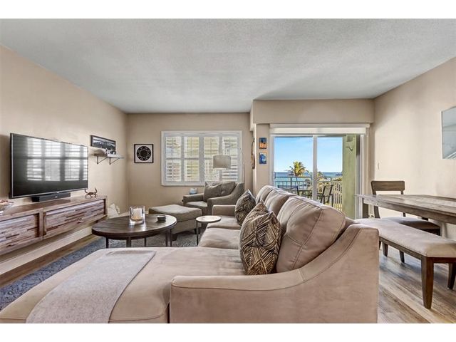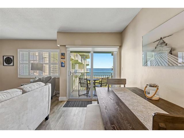 Amazing direct Ocean views as you walk in the door. Bedroom and back exterior have direct intracoastal view. No expense spared; Gorgeous Quartzite counters in Kitchen and Bathroom. All LG appliances, custom cabinets, Tankless water heater 2025, Roof 2025, 2020 A/C, Lux vinyl Flooring, Complete Turtle impact glass. Hurricane door. Fully furnished including sleeper sofa. Square footage utilized to the maximum. ALL AGES WELCOME. NO LAND LEASE. Bring your toothbrush.. turn key . Unit has private storage . Assigned parking # K Seller paying $37K assessment for concrete restoration, replacing concrete walls with aluminum railing & exterior painting.