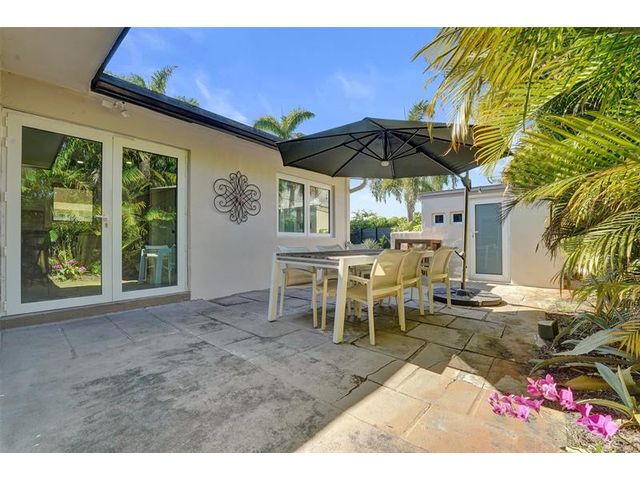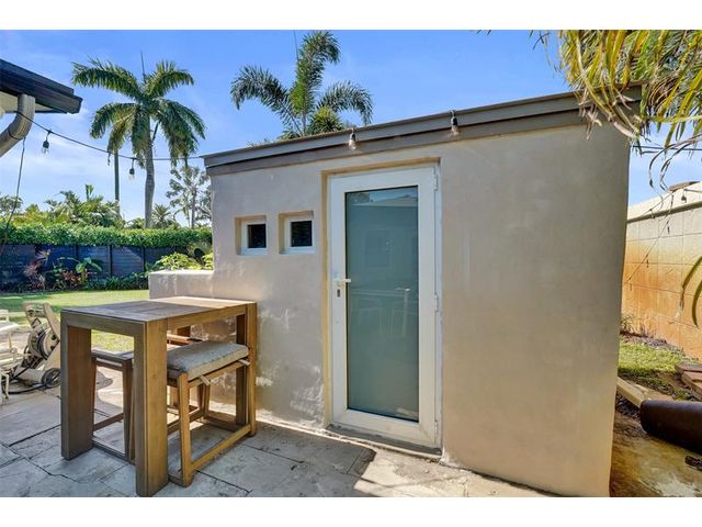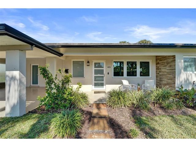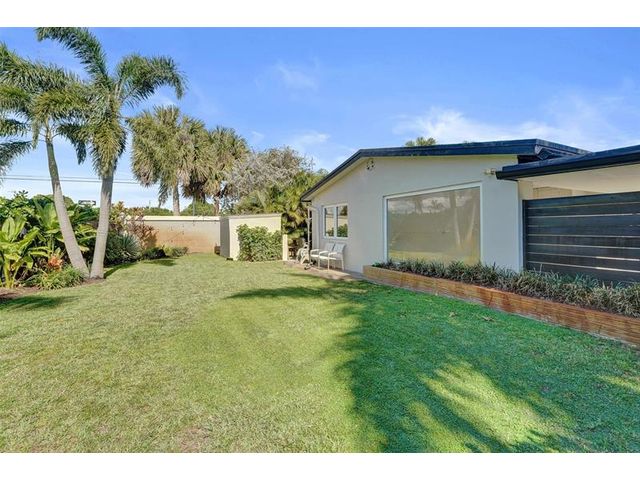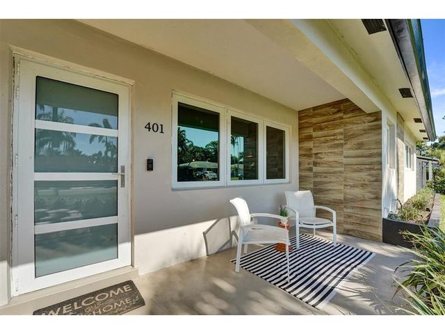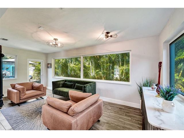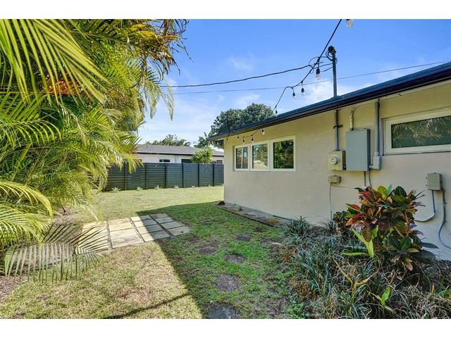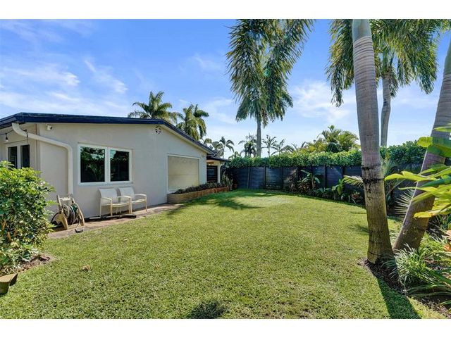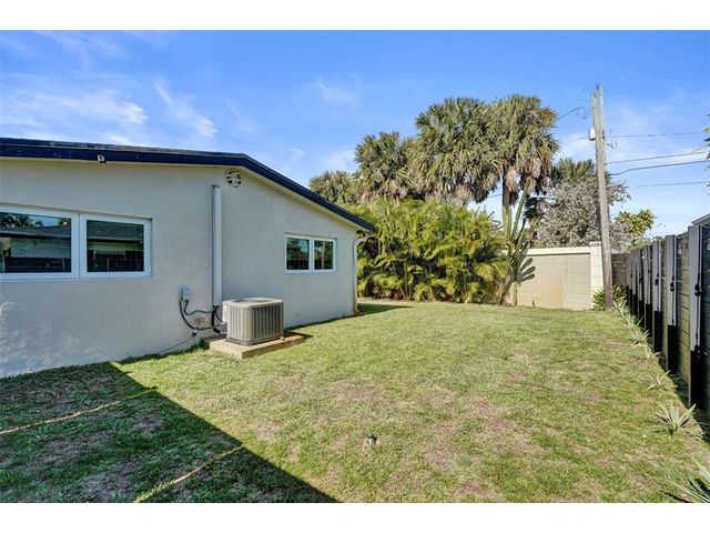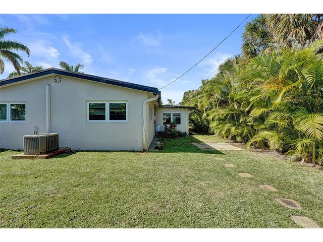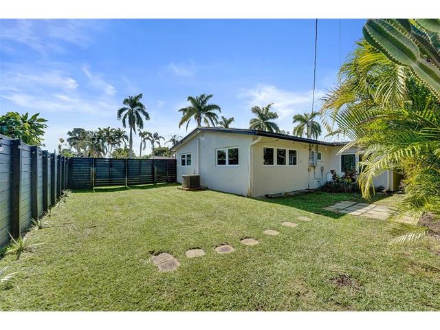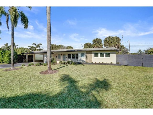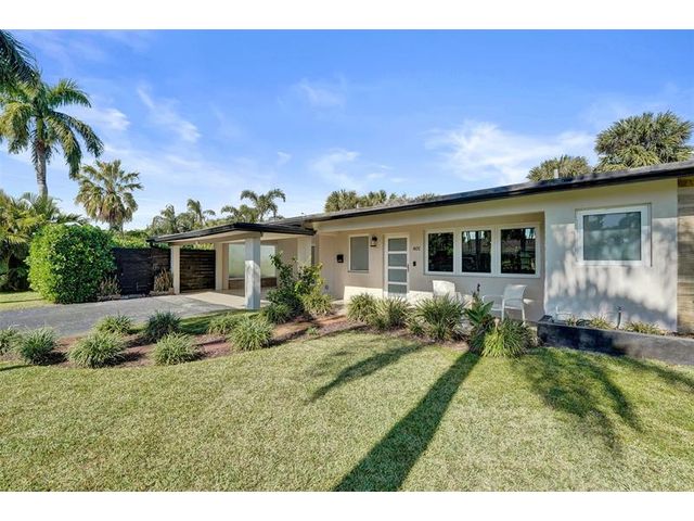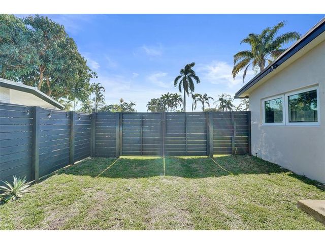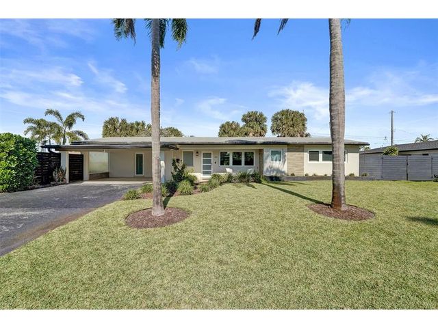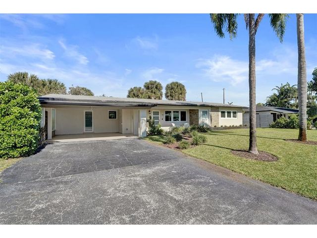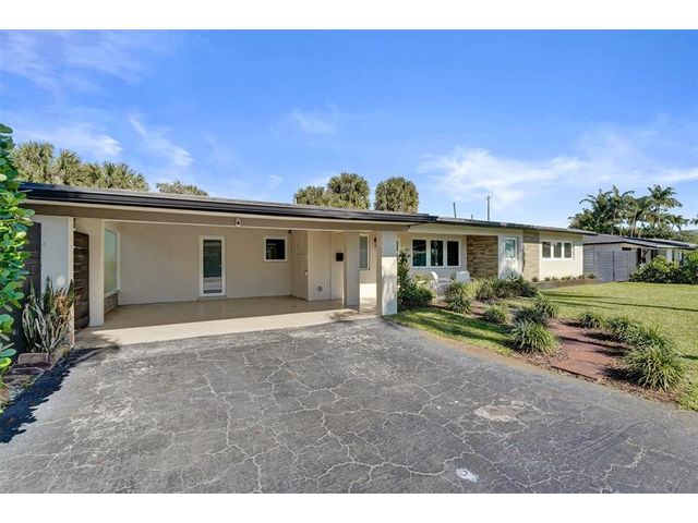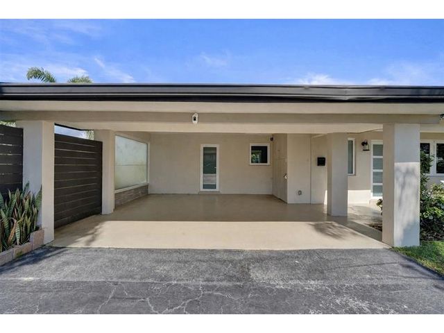 Gorgeous 3 bedroom 2 bath corner lot in North Andrews Gardens with a spacious two-car carport. Filled w/ natural light this home features a fully updated contemporary renovation w/ impact windows and doors & uniform tile flooring throughout. Large living area w/ chic tile accent wall flows seamlessly into the cozy Florida room overlooking lush tropical landscaping. Eat in kitchen w/ white shaker style cabinets, sleek black hardware, updated appliances, & oversized pantry / laundry room. Spacious primary & secondary bedrooms complemented by beautifully updated bathrooms. 3rd bedroom w/ private entrance, ideal for home office or guest space. Backyard offers a paved patio, detached concrete block shed, fenced off-street boat/RV parking, well irrigation, & ample space to add a pool.
