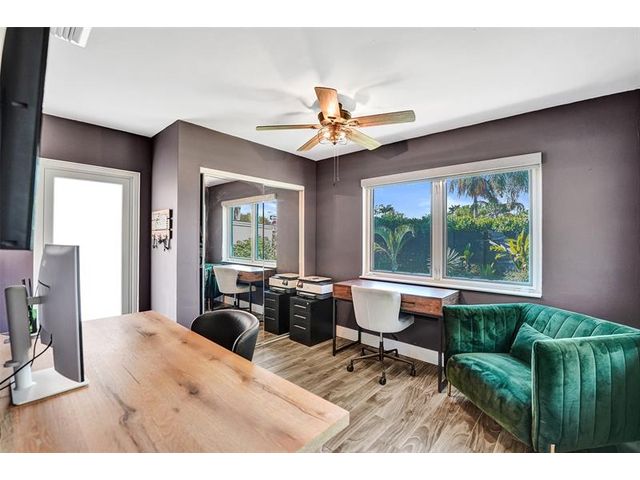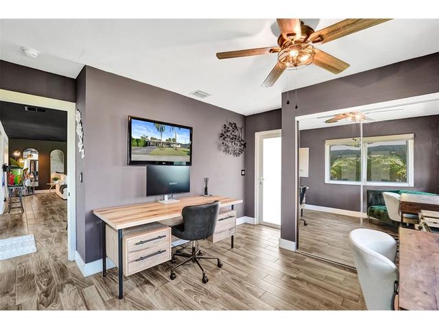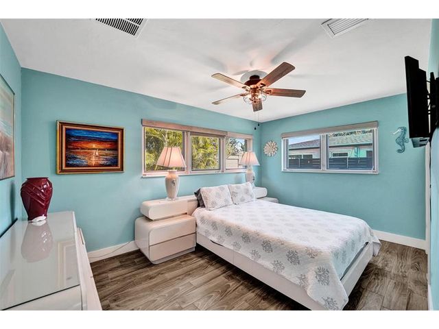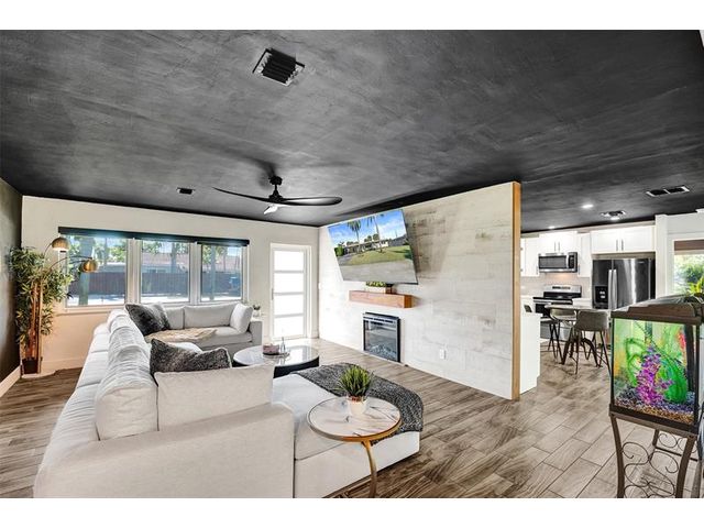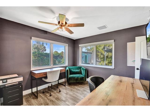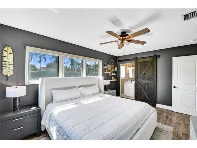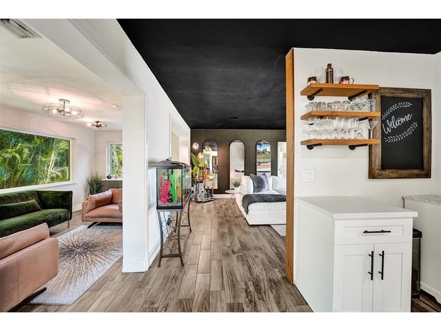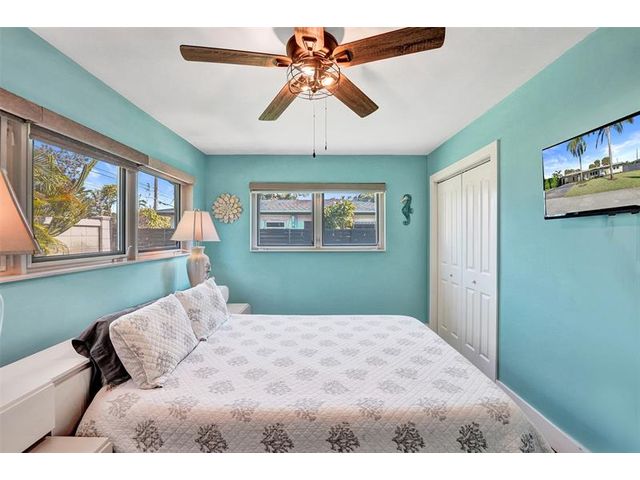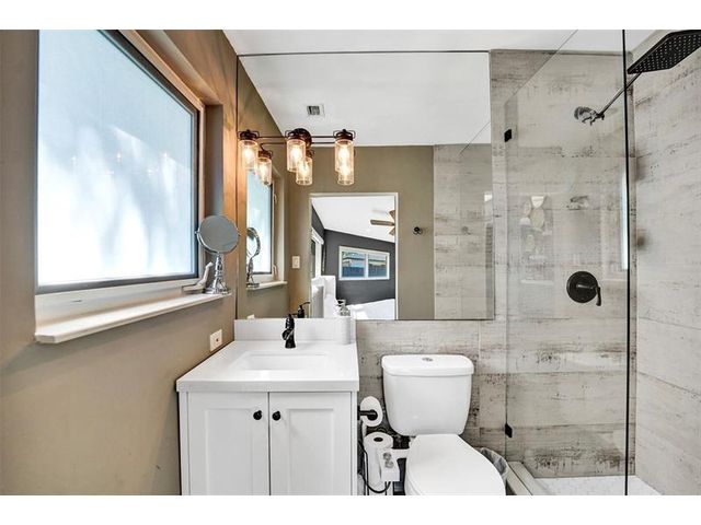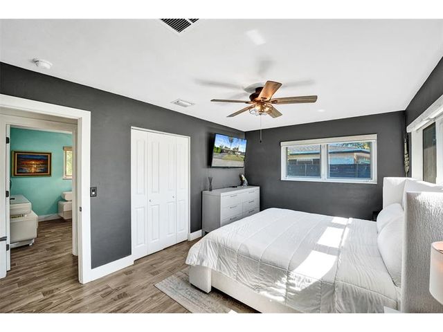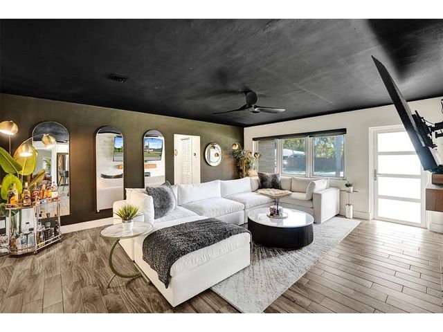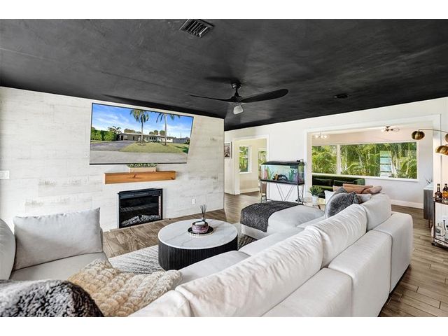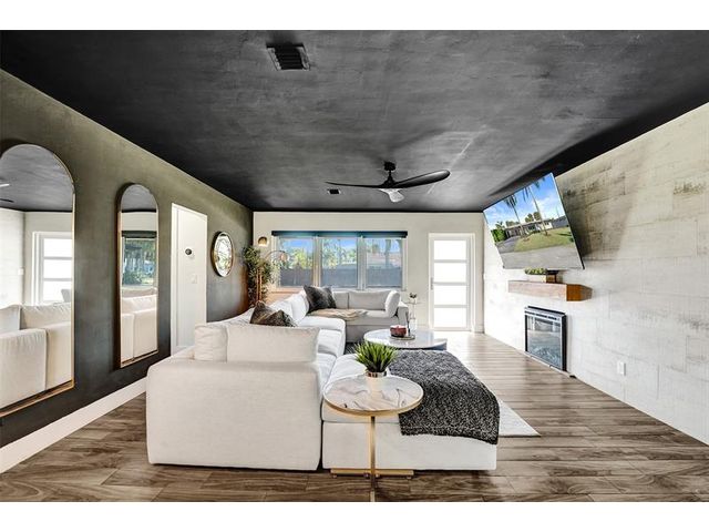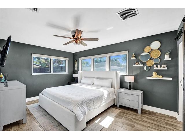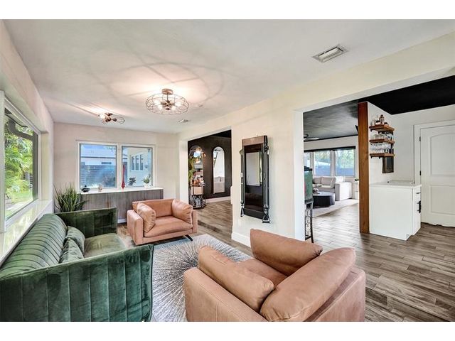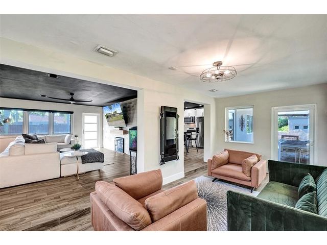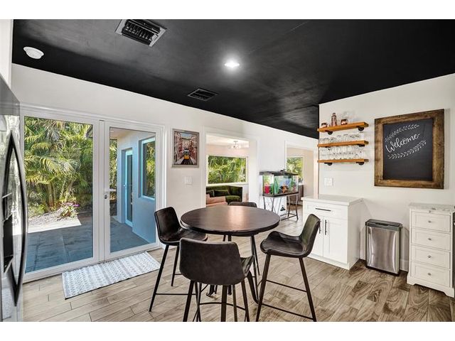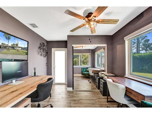 Gorgeous 3 bedroom 2 bath corner lot in North Andrews Gardens with a spacious two-car carport. Filled w/ natural light this home features a fully updated contemporary renovation w/ impact windows and doors & uniform tile flooring throughout. Large living area w/ chic tile accent wall flows seamlessly into the cozy Florida room overlooking lush tropical landscaping. Eat in kitchen w/ white shaker style cabinets, sleek black hardware, updated appliances, & oversized pantry / laundry room. Spacious primary & secondary bedrooms complemented by beautifully updated bathrooms. 3rd bedroom w/ private entrance, ideal for home office or guest space. Backyard offers a paved patio, detached concrete block shed, fenced off-street boat/RV parking, well irrigation, & ample space to add a pool.