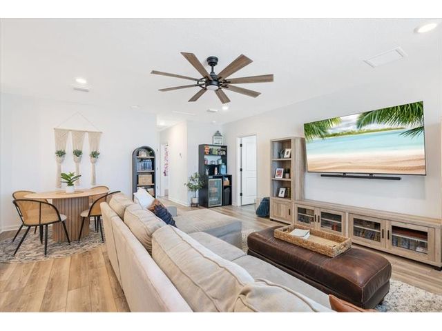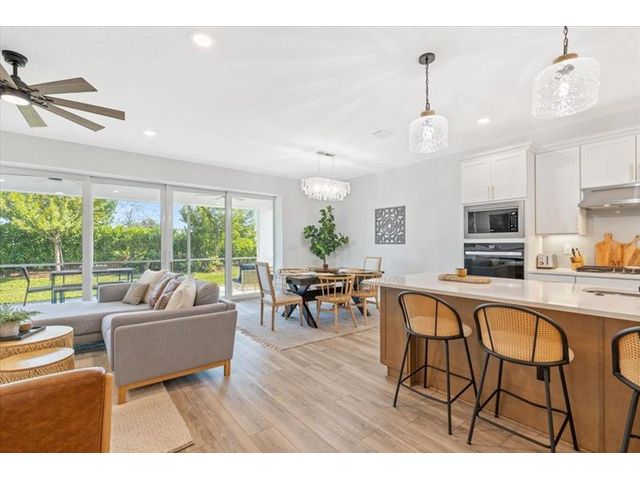 Welcome to refined luxury. Exceptional space, thoughtful design, & high-end upgrades in a desirable community. Sophistication & comfort in an elegant 5 bedroom, 4 bathroom home, which includes a bonus 2nd floor loft, ideal for style & functionality. An expansive floorplan maximizes natural light & effortless flow. High ceilings, upgraded LPV flooring, & refined finishes create an elevated luxurious & inviting atmosphere. Have peace of mind with impact windows & doors, cinder block structure, & Divosta 10 yr warranty. The outdoor space offers an opportunity to enjoy Florida's sunshine & coastal breezes. Community amenities include pristine pool, clubhouse, & pickleball. A short ride over the nearby bridge brings you to beach life with easy access for boating, surfing, kayaking & relaxation.