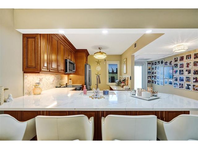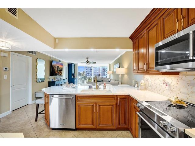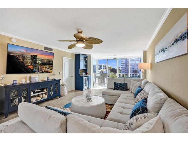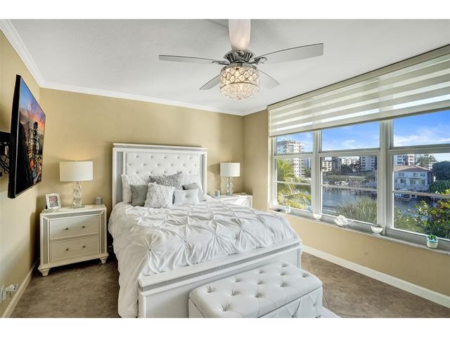 Experience true waterfront living in sought-after Lighthouse Point w/amazing Intracoastal views. Immaculate penthouse-level, Intracoastal-front condo offers 2 spacious en-suite bedrooms, each with a beautifully renovated bathroom. Stunning updated open kitchen shines w/custom wood cabinetry, quartz countertops, stainless appliances & plenty of storage. Expanded living area w/enclosed balcony & impact sliders -perfect for relaxing and entertaining while watching boats glide by. California closet cabinetry & washer/dryer in unit. Impact windows & doors, along w/ wood & tile flooring throughout, complete this move-in ready coastal retreat. Amenities include pool, clubhouse and deep water boat dockage upon availability. 50 year inspection completed -no assessments and reserves fully funded.