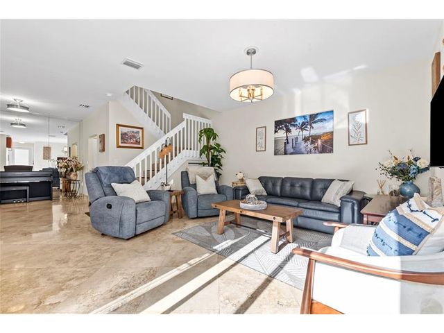 THIS IS A WONDERFUL 3/2.5 CORNER TOWNHOUSE WITH EXTRA WINDOWS AND COURTYARD IS LOCATED ON THE SAME CORNER, WHICH BRINGS IN A TON OF NATURAL LIGHT. SINGLE CAR GARGE WITH A 2 CAR DRIVEWAY. ROOF INSTALLED IN 2020 AND HURRICANE IMPACT WINDOWS. MARBLE FLOORING THROUGHOUT THE PROPERTY. LARGE KITCHEN WITH GRANITE COUNTER TOPS, STAINLESS STEEL APPLIANCES, NEWER FRIDGE AND DISHWAHER. KITCHEN OPENS UP TO A BREAKFAST AREA WITH ACCESS TO THE PRIVATE COURTYARD, WHICH IS WONDERFUL FOR ENTERTAINING, BBQ'S, OR JUST RELAXING. FORMAL DINING AREA IS SEPARTE FROM THE LIVING ROOM. VAULTED CEILINGS IN THE PRIMARY BEDROOM WITH LARGE WALK IN CLOSET. GUEST BEDROOM HAS AN OPEN BALCONY. WEST LAKE IS GUARD GATED 24/7 & 1 MILE FROM THE BEACH. AMENITEIS INCL 4 TENNIS CTS, BB COURTS, HEATED POOL, GYM, & MORE