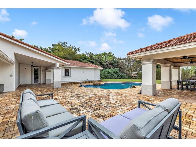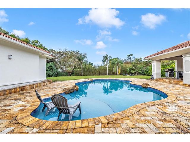 Experience timeless elegance & modern Florida living in this stunning 7 bedroom, 5 bath estate home in the sought after community of Pine Tree Estates, Parkland, FL — with NO HOA! Nestled on a private 1.08-acre wooded lot, this residence blends Northern charm with the airy feel of South Florida luxury. A manicured lawn, & grand entry way with a large putting green. Enjoy an open kitchen and family room with rich wood cabinetry, top-tier appliances, a large island, and generous space for entertaining. Each of the 7 bedrooms are filled with natural light, featuring custom closets, peaceful pool or garden views, and a warm ambiance. The private backyard is a tropical retreat with a sparkling pool, separate in law / guest house and tons of room for animals.