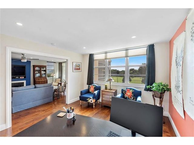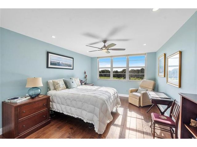 DECORATOR COMPLETELY REMODELED THREE BEDROOM SPLIT PLAN, TWO FULL BATHS & 1/2 BATH. All impact windows including sliders to screened porch. All ceilings have low profile recessed lighting in entire unit. Engineered wood floors. All bathrooms and kitchen updated. All substantial upgrades were fully permitted. THIS IS THE GENEROUS POPULAR "F" MODEL. Custom window shades with blackout features. Pet friendly, 2 pets allowed! Separate laundry room with pocket door. 2 heated pools. 4th floor view of the 13th and 14th holes on one of the 2 golf courses. Recreational amenities and high speed wifi included in fees. No assessments. 40 year milestone has been completed. Strong reserves. New roof. Charming walkable neighborhood. Close to Top Golf and many great restaurants. Just 5 miles to the beach!!