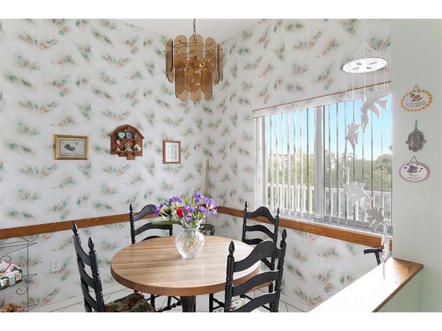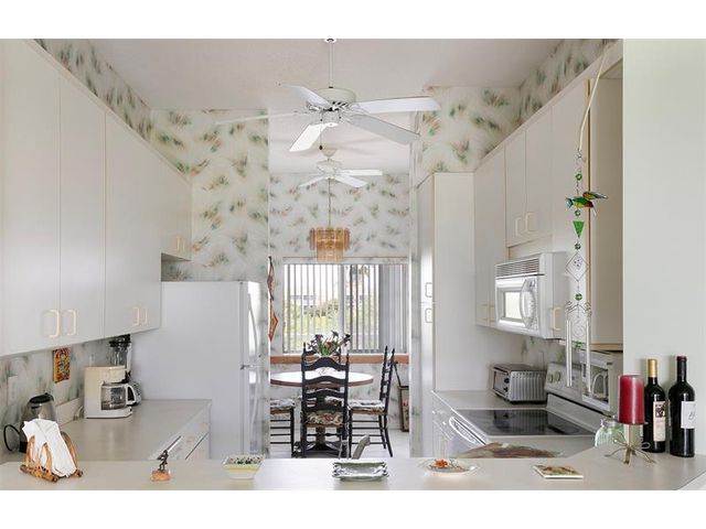 Situated on the top (4th) floor this 2-bed 2-bath residence offers lake and treetop views that set the tone for relaxed South Florida living. Located in the desirable Kings Point 55+ active community the condo features high ceilings and a thoughtfully designed open living and dining space full of natural light. The kitchen includes a cozy eat-in area and an oversized pass-through, ideal for hosting or casual gatherings. A spacious screened balcony extends the living area outdoors, perfect for unwinding or enjoying meals in the fresh air. Unit comes with a washer and dryer and has deeded membership granting access to KP's impressive clubhouse with resort-style amenities & full calendar of activities. A wonderful opportunity to enjoy a vibrant low-maintenance lifestyle in sunny Florida