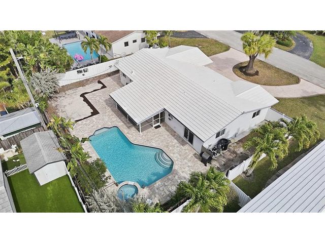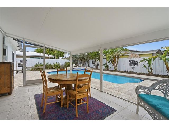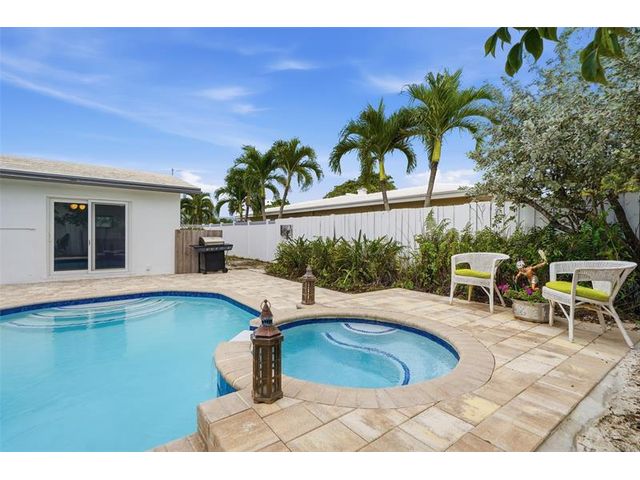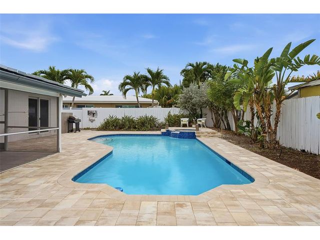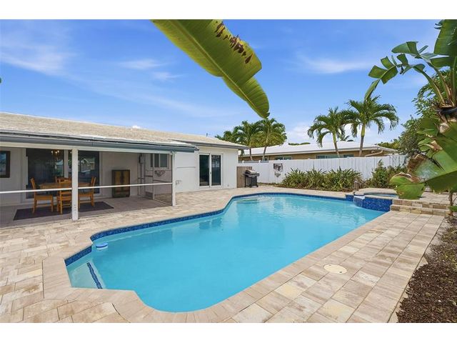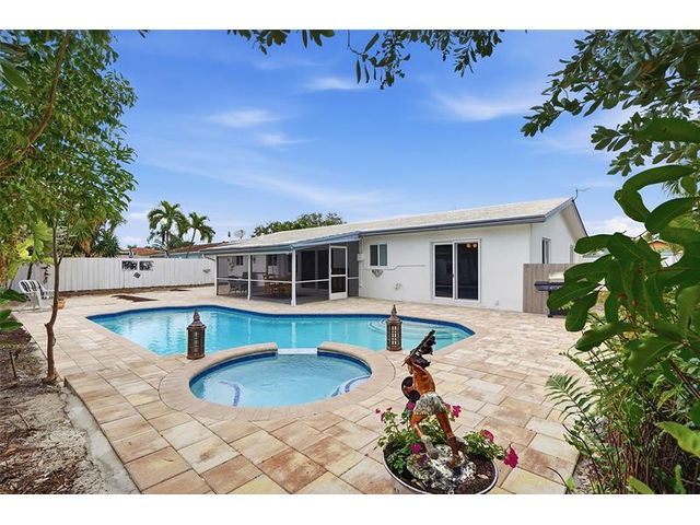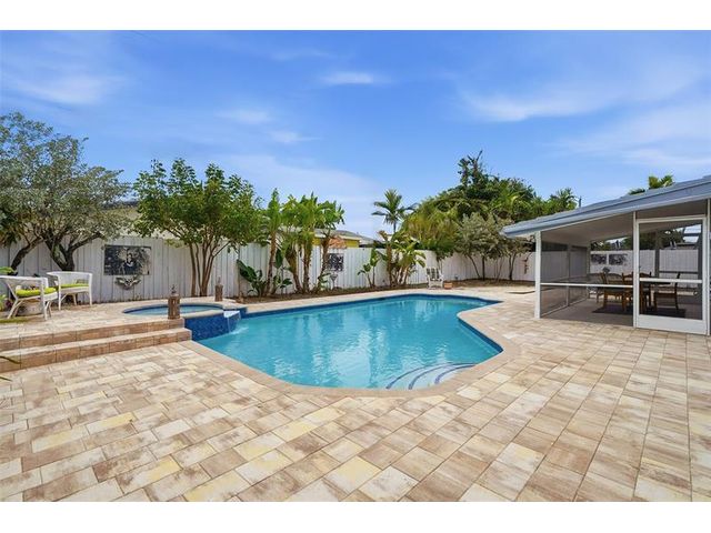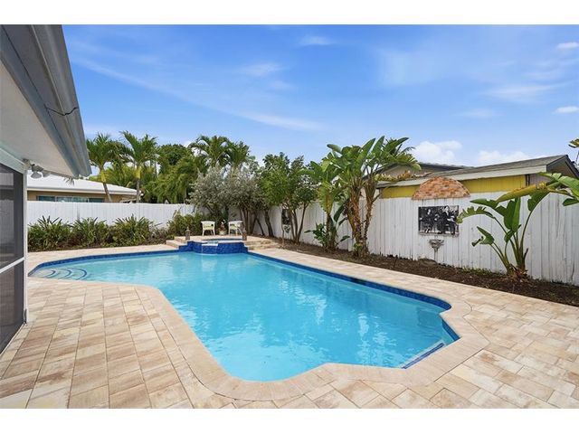 Spacious and well-maintained 2-bedroom, 2-bath single-family residence located in the desirable Coral Ridge Isles neighborhood. The home offers an eat-in kitchen, walk-in closet, expansive living area, and a generously sized kitchen ideal for daily living and entertaining. Additional features include a spacious interior laundry room and an oversized two-car garage. The private, fully fenced backyard is perfect for outdoor enjoyment, featuring a heated pool and spa with brand-new pavers and tile, a large covered screened patio, and hurricane impact windows. Conveniently situated near the beach, I-95, and top-rated schools in a quiet, well-established NE Fort Lauderdale community.