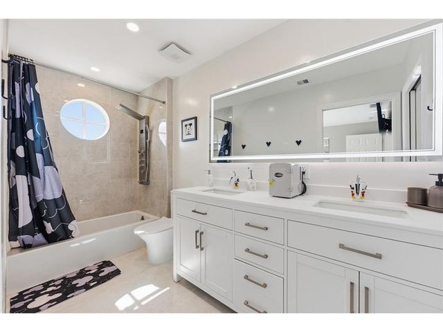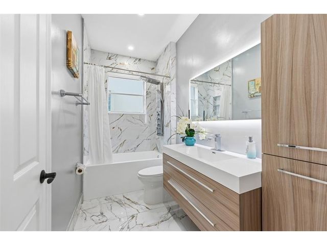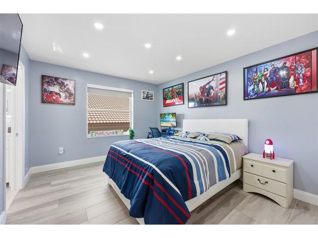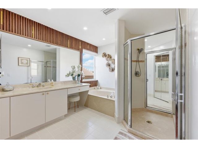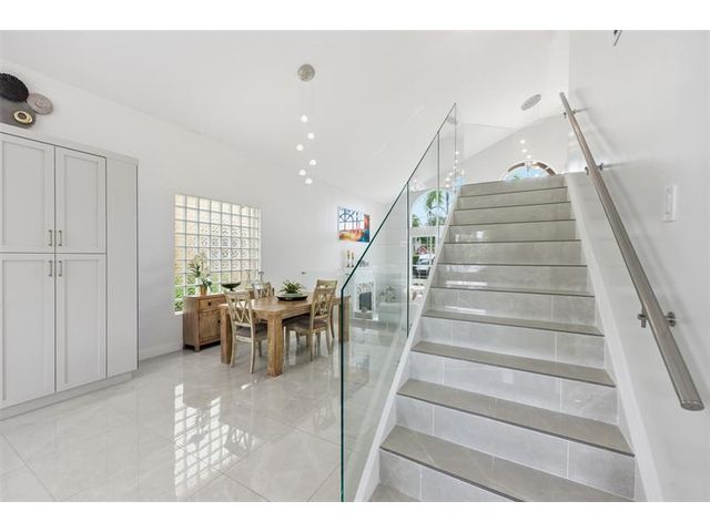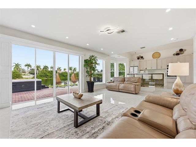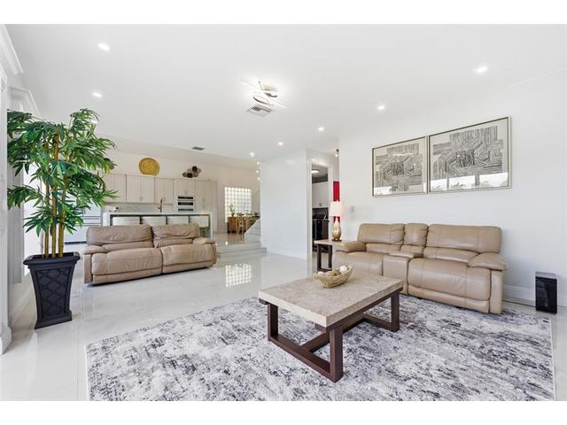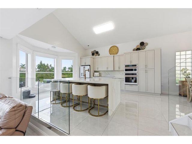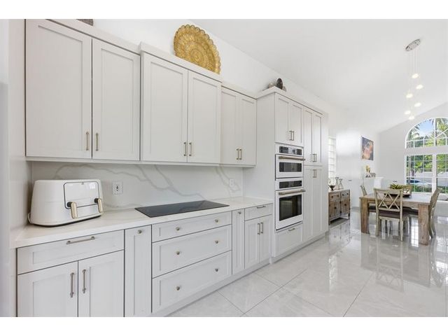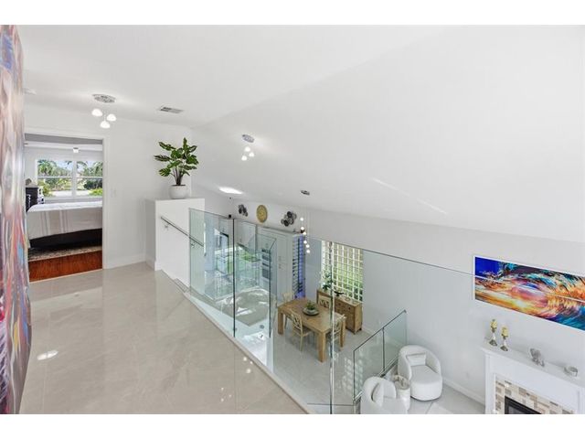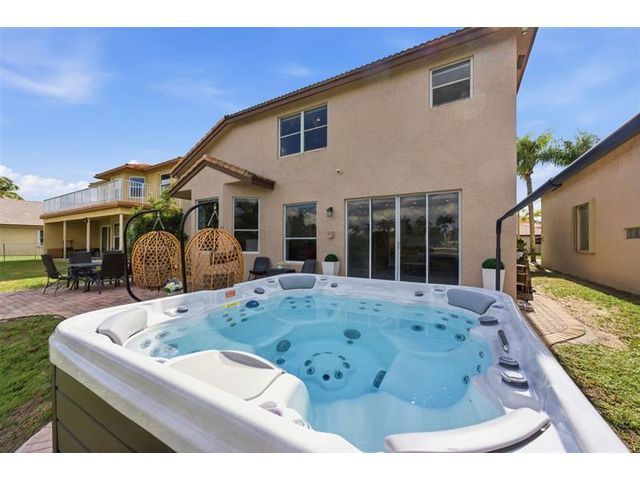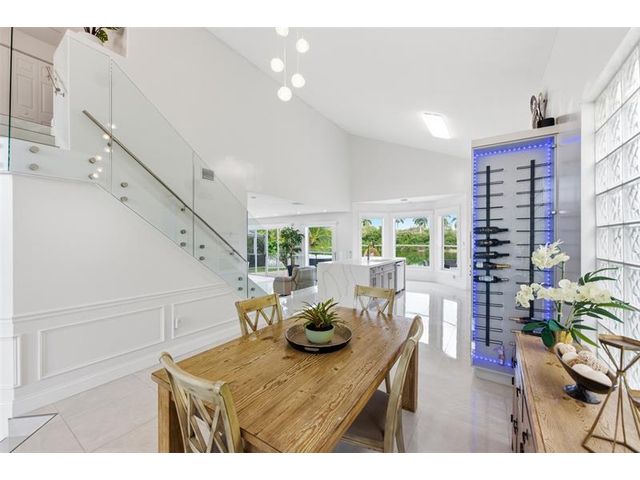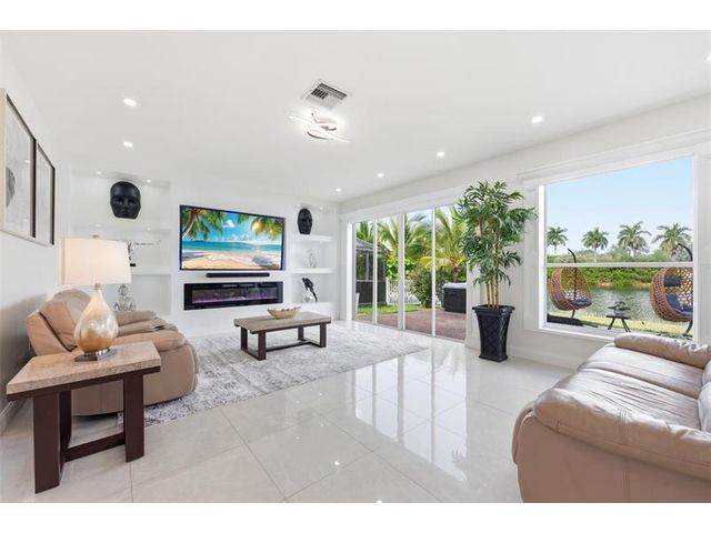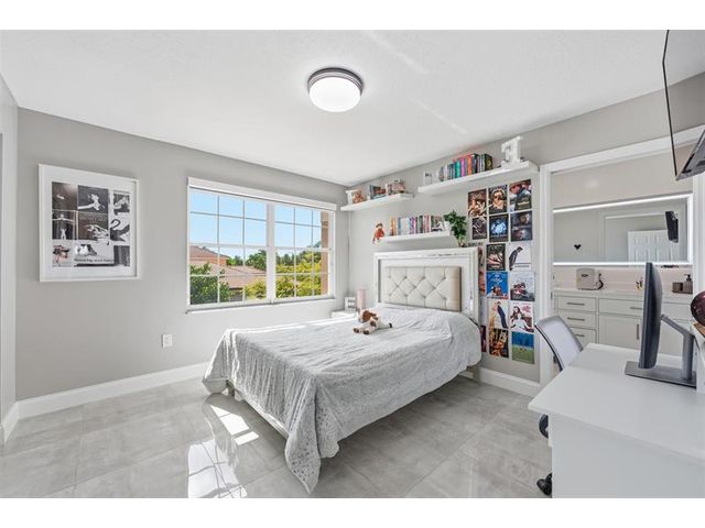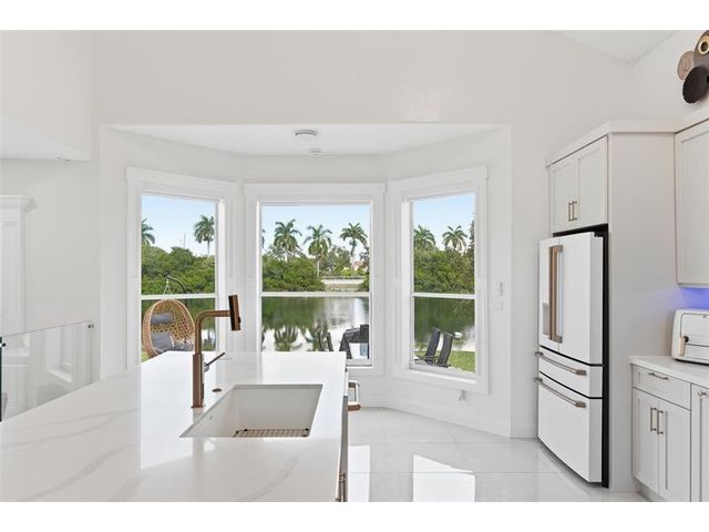 Elegant lakefront residence in a premier gated Miramar community offering a bright, airy open design with soaring ceilings and exceptional upgrades throughout. This 4-bedroom, 3-bath home includes a bedroom and full bath on the main level, ideal for guests or multigenerational living. Features include a brand-new designer kitchen with Café appliances, under-cabinet lighting and illuminated wine storage, a striking glass staircase, upgraded bathrooms, and custom living room feature wall with fireplace. Marble flooring, detailed molding, and refined wainscoting elevate the design. The expansive primary suite offers 2 walk-in closets & a spa-inspired bath with his-and-hers sides joined by a walk-through shower. Room for a pool. Community offers play areas and extra parking across the street.