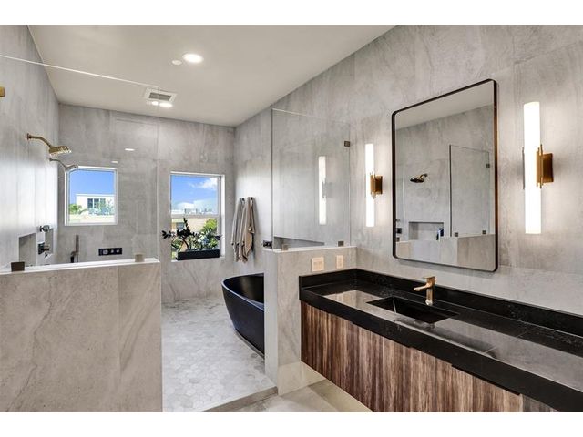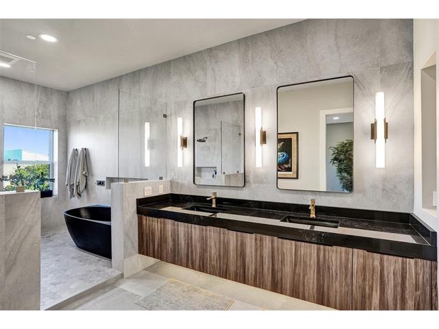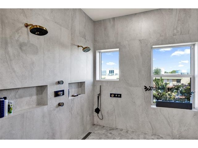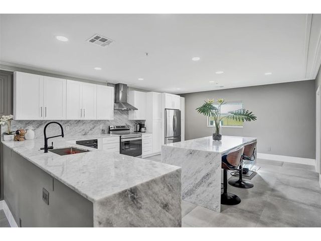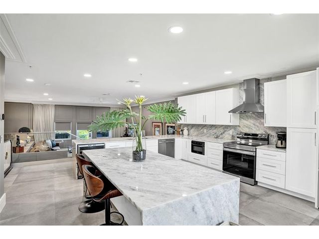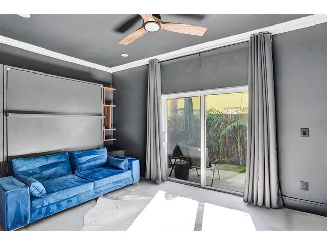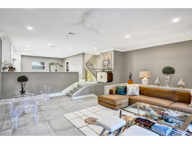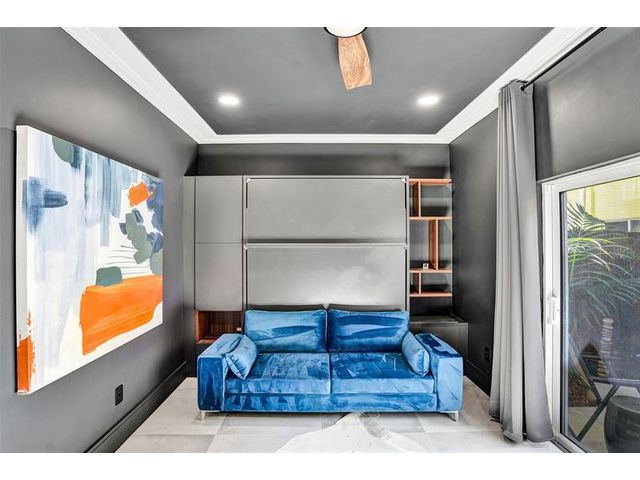 Completely reimagined from top to bottom, this home offers elevated living across 4 beautifully finished levels w/ refined design & modern luxury thru/out. Features incl. porcelain tile, glass stair railings, designer lighting, crown molding & bespoke millwork. 1st fl. provides flexible living w/ custom Murphy bed & opening to a private, landscaped outdoor retreat w/ turf, Palms, micro-irrigation & lighting. Chef’s kitchen w/ shaker cab., calcite counters & SS appl., + 1/2 bath w/ custom Viola Calacatta marble vanity. Rebuilt 3rd fl. features spa-like primary bath w/ Kohler fixtures, quartz, custom cab. & lg. shower w/ soaking tub. 4th fl. suite/office w/ full bath & rooftop deck w/ custom awning. A truly turnkey home blending smart technology, elevated design & modern sophistication.
