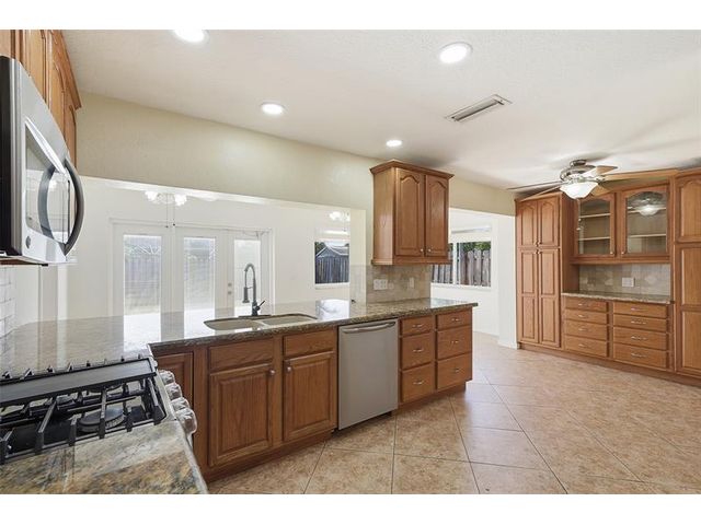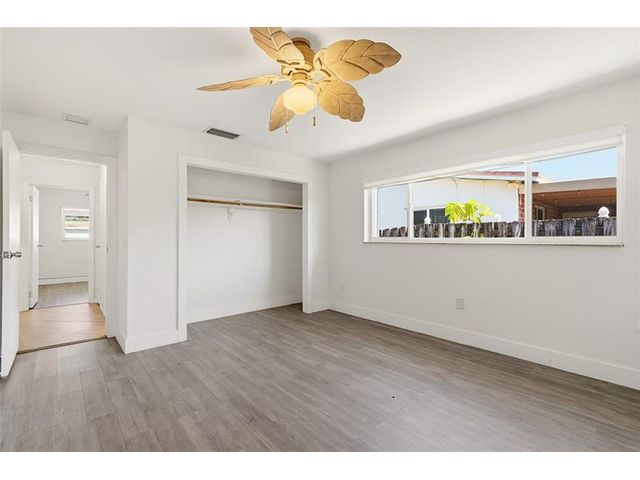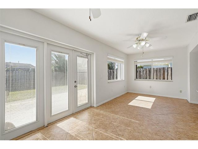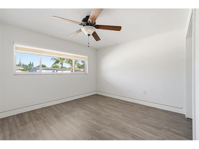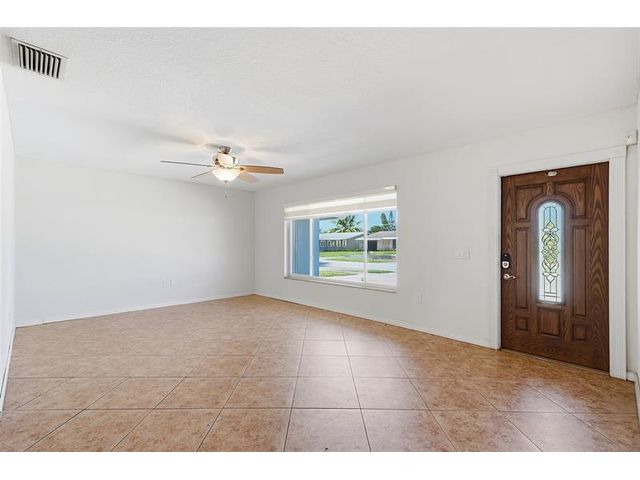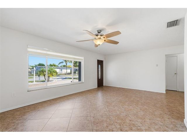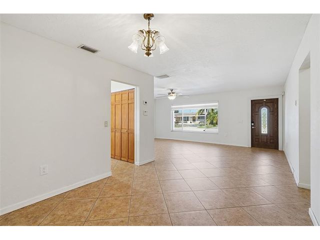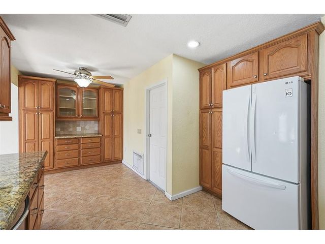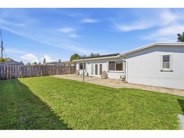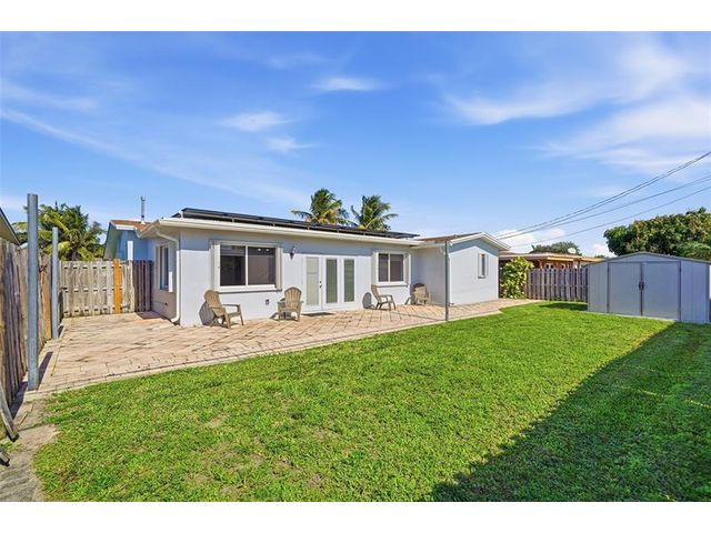 Welcome home to one of the largest models in this subdivision! Thoughtfully updated with solar panels for low electric bills and a 2021 roof, this home offers comfort and peace of mind. Set on a generous lot with a circular paved driveway and thoughtful landscape add to the curb appeal, the bright, open layout is filled with natural light, enhanced by modern window treatments, large windows, and accordion shutters. The den has been used as a 3rd bedroom or office in the past. The kitchen features warm wood cabinetry, ample counter space, and newer appliances. Out back, enjoy a spacious yard with patio space, a tool shed, and room for a pool—perfect for relaxing evenings or gatherings with family and friends.