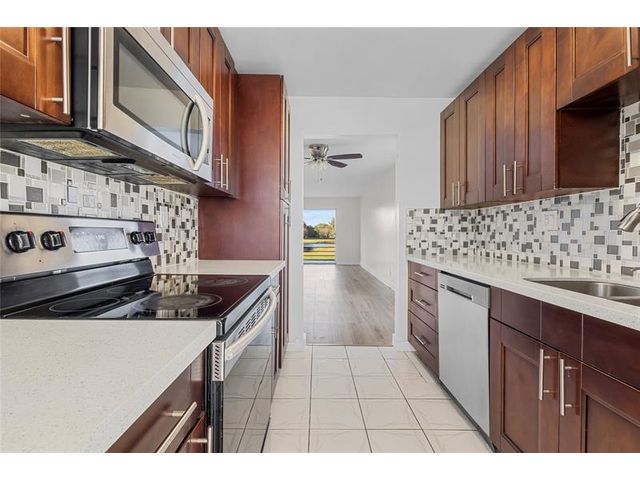 This 2 bedrooms 2 bathrooms corner unit has it all, well maintained and great location. Enjoy the Serenity and beautiful views of canal and golf course right from the living room, kitchen and master bedroom. This unit has been freshly painted with a modern kitchen and newer appliances, Laminate and tile flooring through out the unit. Stackable Washer and Dryer with plenty of storage. This unit is move in ready. Oversized screen in porch over. Community has a clubhouse and pool. This is a 55+ community. Walking distance to grocery store and restaurants. Close to major highways, shopping and public transportation. Extra storage outside the unit.