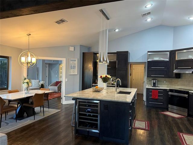 Located on a family friendly street in Forest Ridge, this up-to-date and renovated pool/waterfront estate is unique. Featuring 2750sq/ft, 4 bedrooms, 3.5 bathrooms + Bonus Room (5th Bedroom or Office). Spacious living room with French doors and gorgeous fireplaces (electric). The huge kitchen/dining room/family room area is all open with its high ceilings and wooden beams. Featuring newer kitchen cabinets with a huge island with new quartzite countertop, and new Stainless Steel Appliances, including a wine fridge. Oversized primary suite overlooking gorgeous newly paved pool with pergola and lake! Primary suite features his and hers closet, double vanity, large shower and bath! Impact Doors and Windows throughout. New blinds. Newly paved driveway and exterior of house recently painted.