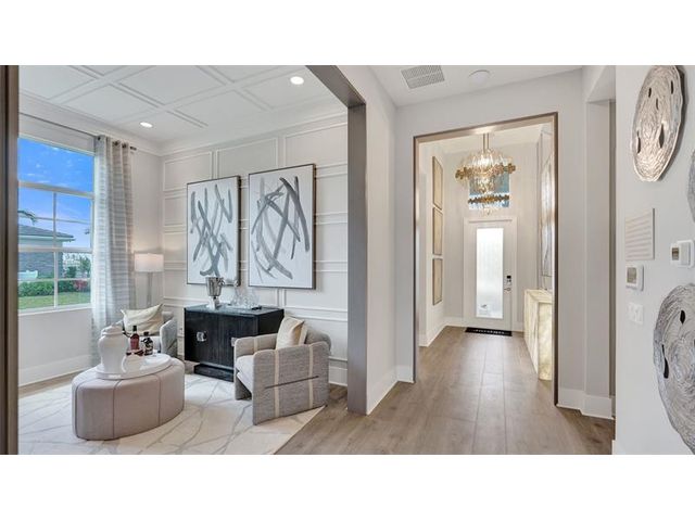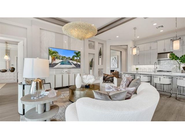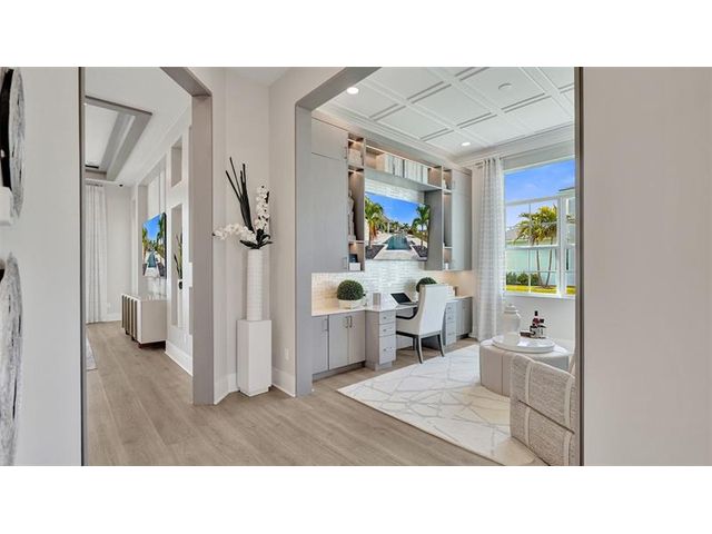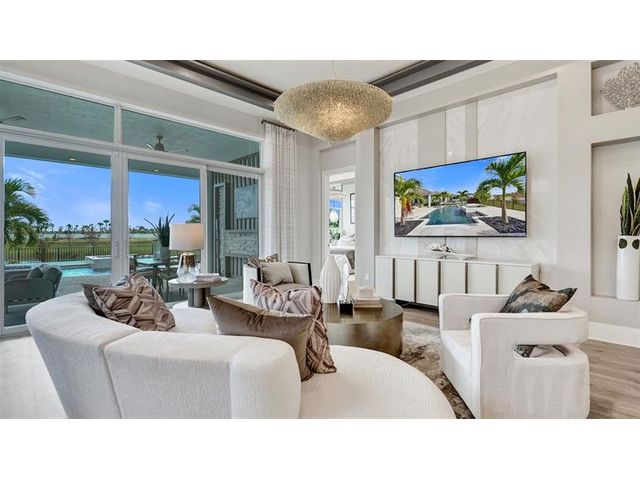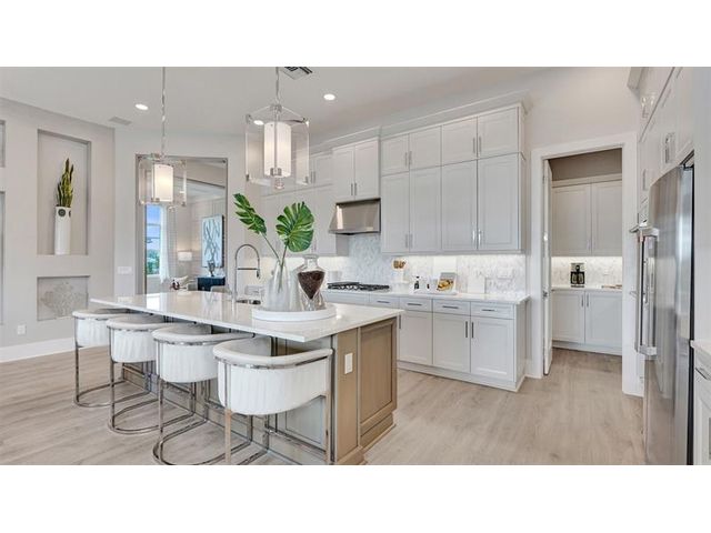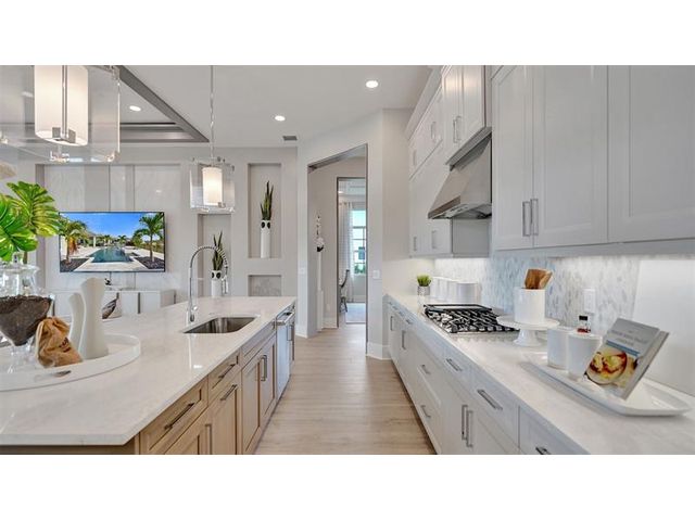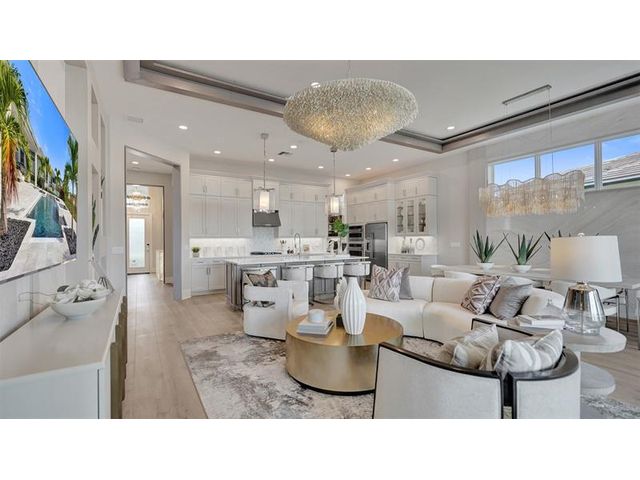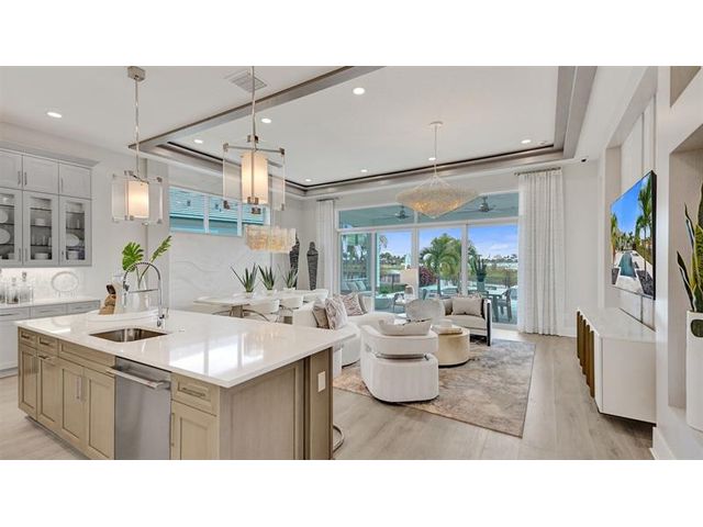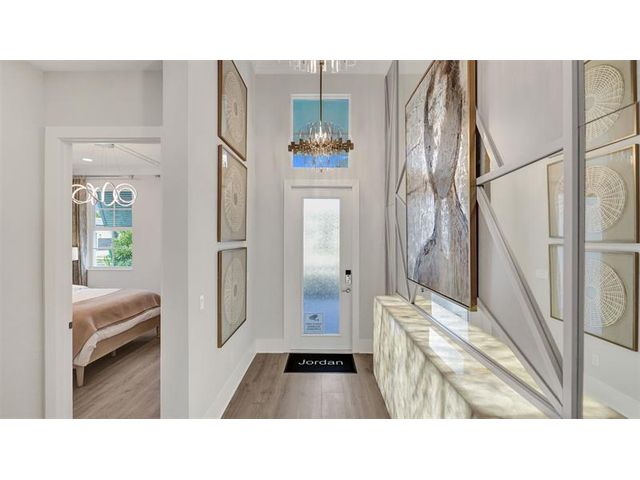 The Kitchen serves as the command center of the Jordan floorplan. For the chef in the family, there's lots of space to work and house your tools of the trade with substantial countertop area, cabinetry and pantry. From the island, the view opens up light & bright across the Dining area and Great Room out to the covered Lanai. Owner's Suite highlights include a tray ceiling, spacious walk-in closet and separate vanities in the Owner’s Bath. You can personalize the Jordan floorplan with structural options. Photos of a decorated model home are for reference only. Actual home will differ.