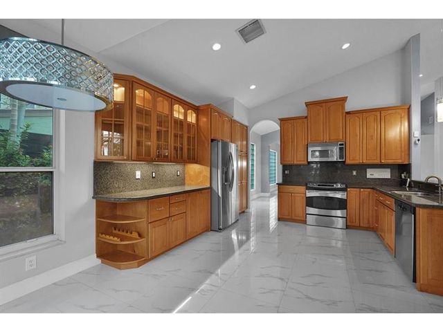 Step into this magnificently renovated waterfront masterpiece in the prestigious gated community in Pelican Isle. This sun-drenched sanctuary features a sprawling open floor plan, dramatic volume ceilings, and exquisite tile floors throughout. Boasting two opulent master suites with huge walk-in closets, the home offers smart motorized blinds throughout and a massive screened patio overlooking 60 feet of breathtaking water frontage. Major upgrades include a new roof (2021), new AC (2022), and complete plumbing replacement (2025). Nestled in Silver Lakes, famous for serene lakes and scenic walking trails, you’re minutes from top-rated schools, major highways, seaports and airports. Perfectly situated between Miami and Fort Lauderdale, this is the ultimate turn-key dream!