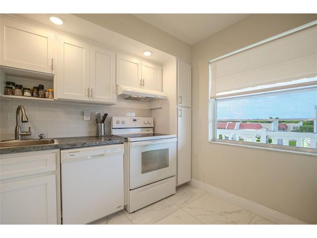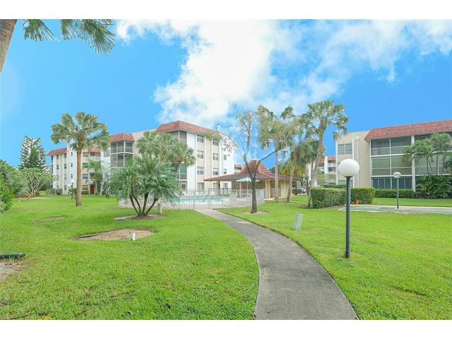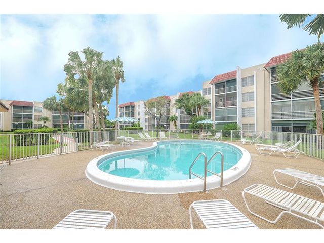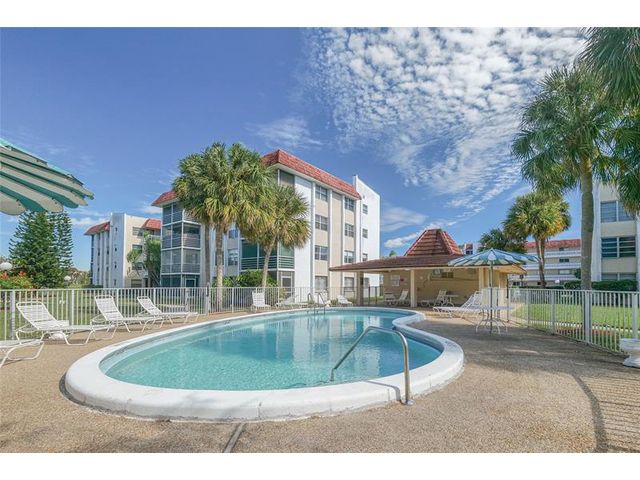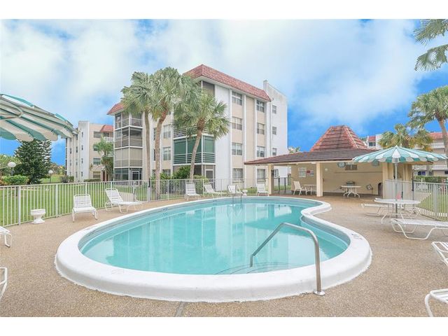 Modern! Fully Furnished! Remodeled! 2/2 Penthouse! in a 55+ complex. Pool & shuffleboard views. Wide vinyl laminate floors & tile. Large living/dining area. Kitchen boasts new cabinets & pass thru to dining room! Roll shades on terrace. Gated & fenced! 40 year inspection & work Done! Pools, BBQ area, a gate, shuffleboard, a clubhouse with a card room, library, kitchen, gym, & more. Common Laundry. The maintenance fees include landscape, cable TV, internet, trash, water/sewer, common area insurance, roof, and outdoor pest control. One owner must be at least 55 and any other occupants must be +50, the other can be at least 50. 6 mos maint fee held in escrow for 18 months. 20% down per the association. , no pets. A Great Community to live!
