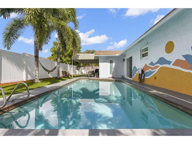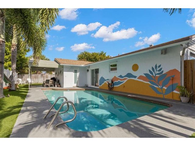 Beautiful 3-bedroom, 2-bath home with a pool in a quiet, small community — a true hidden gem! Solid CBS construction with a bright, open layout featuring a spacious kitchen with breakfast bar, dining room, and multiple living areas. This home has been thoughtfully updated throughout, including beautifully updated bathrooms, a tankless water heater, accent walls, plantation shutters, and a new front door. Large bedrooms offer comfortable living. The covered patio and pool are complimented by a low-maintenance turf backyard, ideal for outdoor entertainment, play and easy upkeep year-round. Two-car garage with a large driveway offers plenty of parking. Low HOA at only $67 quarterly. Nothing to do but move in and enjoy!
