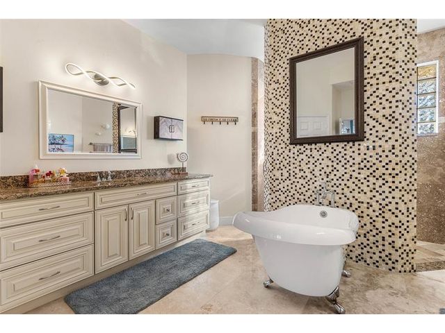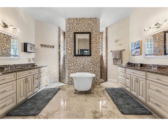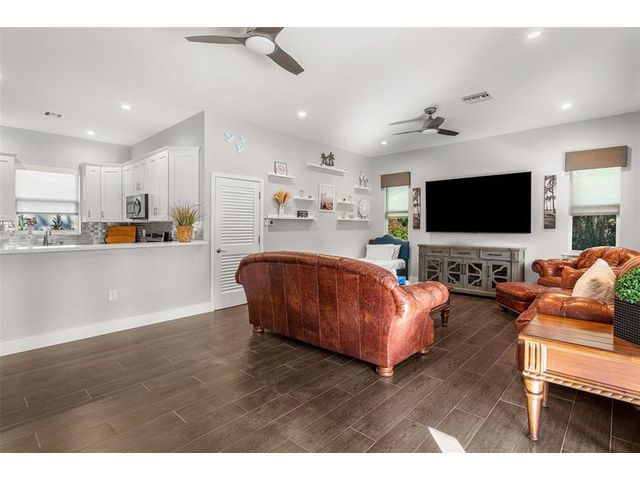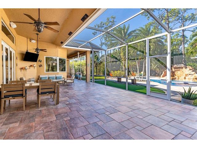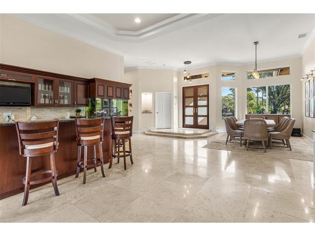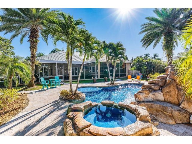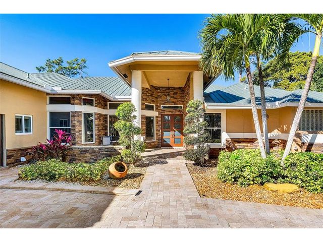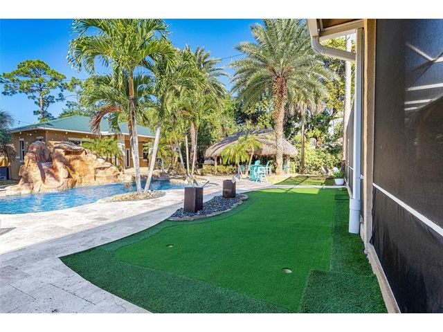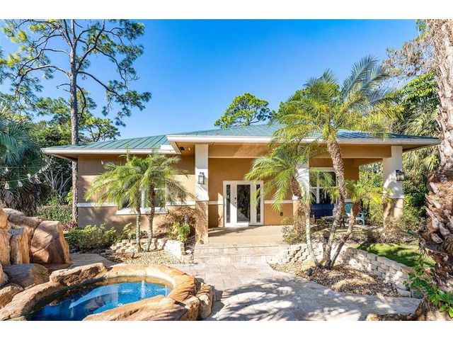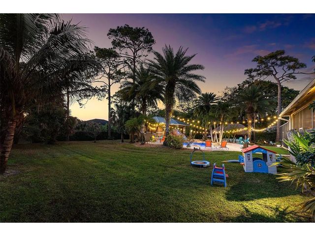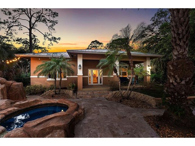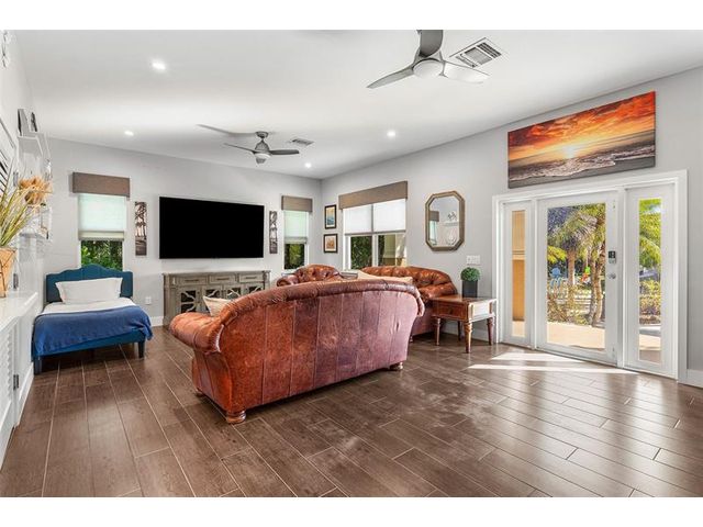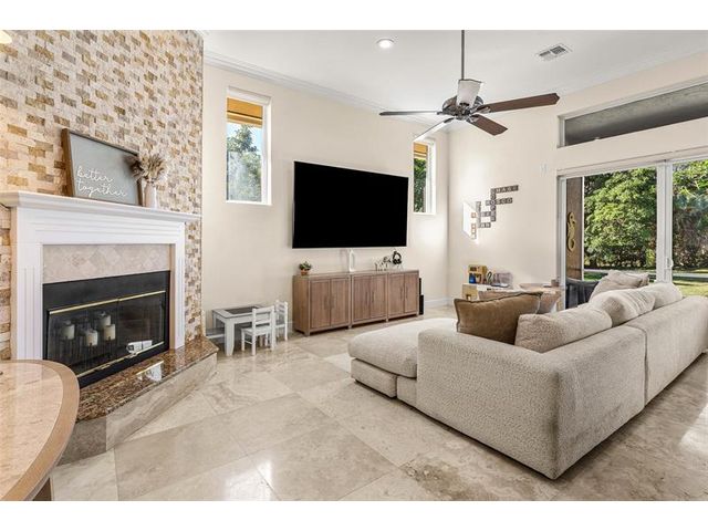 Beautiful family compound with a guest house set on 1.09 acres, perfect for multi-generation households. Large living areas framed by impact glass create seamless indoor/outdoor flow with tranquil views of the tropical pool & backyard. A striking exterior features a long driveway, manicured lawn, & stunning double-door entry. The open kitchen/family room offers wood cabinetry, top-shelf appliances, a fireplace & generous space. The impressive primary suite boasts a spa-like bath, custom closets, & serene pool views. Enjoy a private backyard retreat with a tiki hut, oversized pool with waterfall & slide, multiple outdoor living spaces & when the sun goes down the magic begins. Fabulous guest house with a front porch, great room, full kitchen & bath—ideal for guests or in-laws.