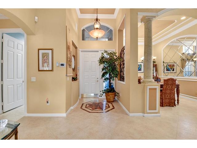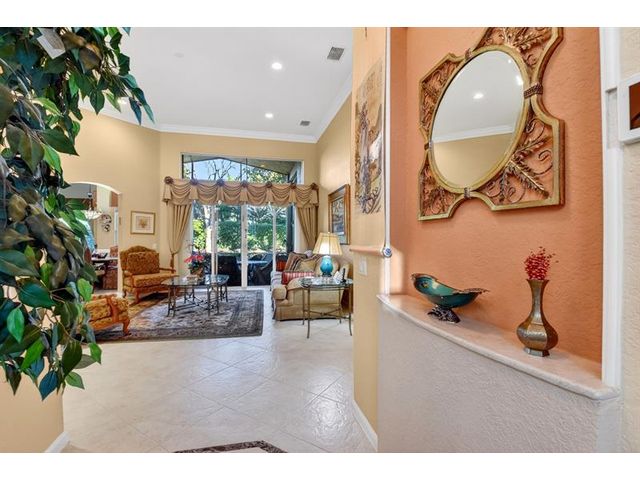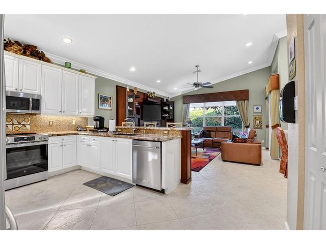 Rarely available Avila Model with 3 Bedrooms + den, and 2.5 baths on an extra spacious lot. Large kitchen featuring white cabinets, beautiful granite counters and an oversized sink. Stainless steel appliances with a BRAND NEW stove in 2026, Newer dishwasher, 2024, & wine refrigerator making cooking and entertaining a breeze! Formal dining room, and crown molding add elegance to the living areas. Designer Silhouette and Luminate window treatments enhance the décor. Enjoy peace of mind with 2 zone A/C and accordion hurricane shutters. Relax & embrace the Florida lifestyle on your screened lanai. Valencia Shores offers an active 55+ lifestyle, with something for everyone! You have found it all*Luxury*comfort*security & fun at this 55+ community!