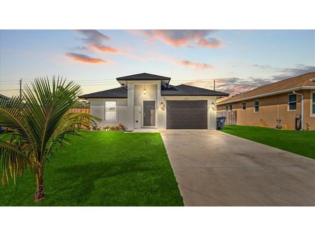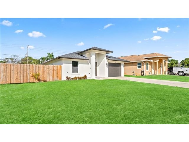 Built in 2024, this modern home is now available as a resale and offers a like-new living experience in a desirable neighborhood. The open-concept layout features quartz countertops in the kitchen and bathrooms, a spacious walk-in closet, LED lighting, and impact windows and doors. The kitchen includes stainless steel appliances, along with a washer and dryer for convenience. Additional features include a sprinkler system and paved driveway. Plenty of space for boats, trailers, or RVs. No association fees.