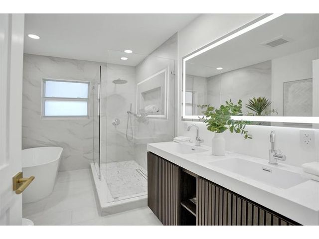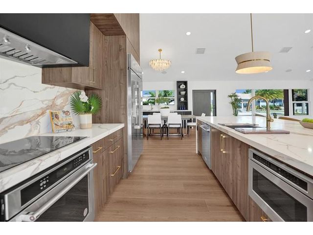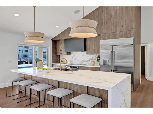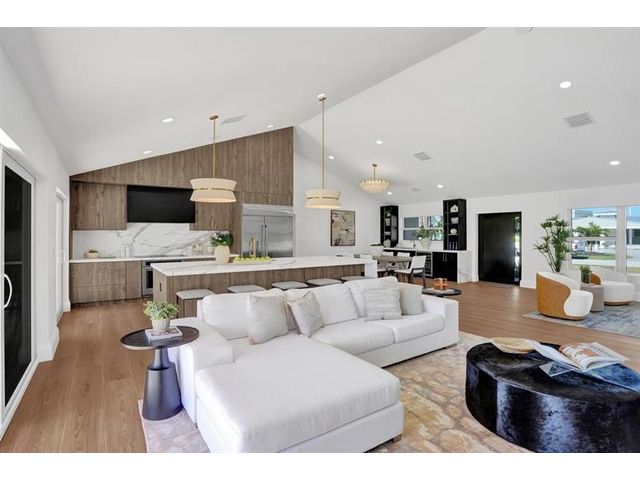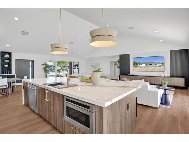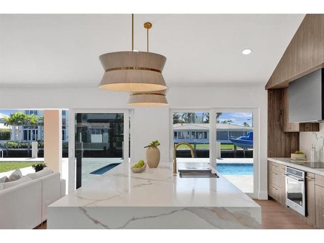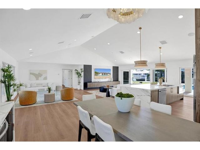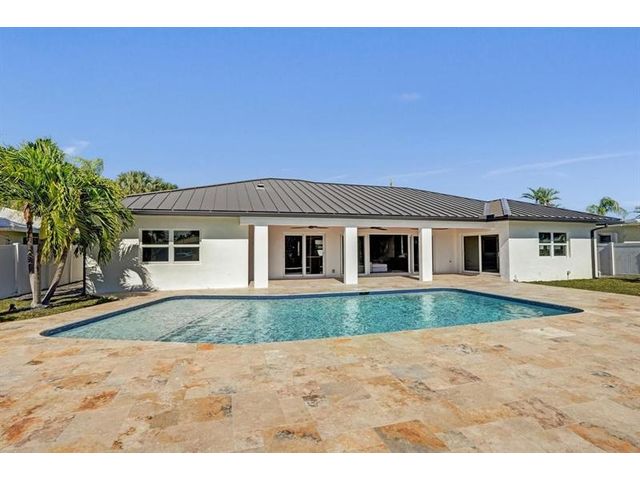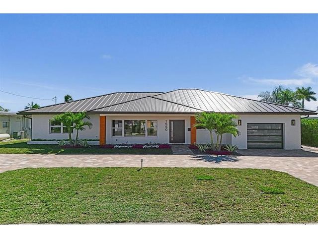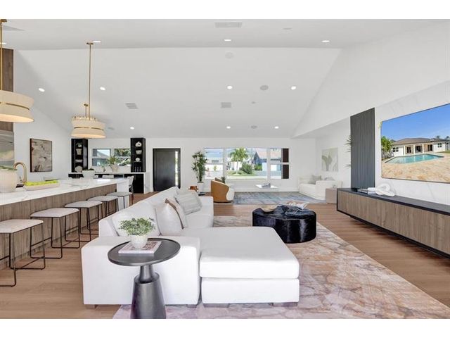 Fully renovated waterfront home and true boater’s dream, ideally positioned on a desirable canal with quick Intracoastal access. Features a new 80’ seawall and 70’ composite dock with room for multiple watercraft. Completely upgraded with a new metal roof for favorable insurance, all new electrical, PVC plumbing, and impact windows and doors. Vaulted ceilings and designer lighting enhance the open coastal layout. Chef’s kitchen offers a quartzite island,custom soft-close cabinetry, wine bar, Thermador induction range, oversized Monogram refrigerator, and high-end appliances. Three bedrooms with new ensuite baths plus a half bath. Enjoy a heated pool, shaded outdoor living area,new landscaping and irrigation, epoxy garage floor, indoor washer/dryer and new paver circular driveway.