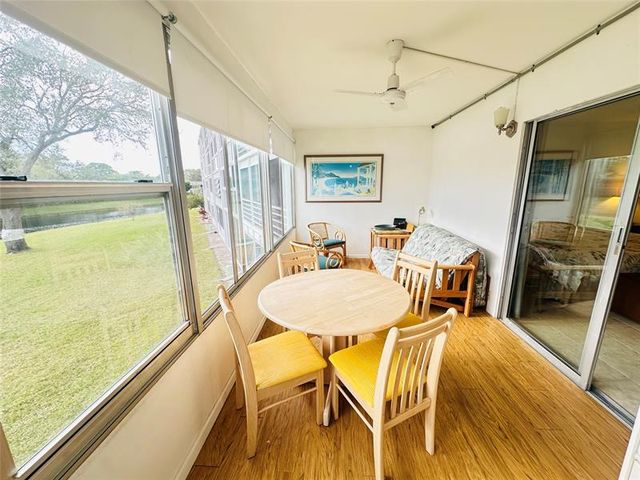 LOVELY 1 bedroom, 1.5 bath condo on the 2nd flr featuring a SERENE LAKE VIEW! The updated kit offers white appl & over-cab ltg, creating a bright & inviting space. Carpet in liv rm & bedrm, tile in main liv areas for easy maintenance. Crown molding enhances the liv area, adding a touch of elegance. Enjoy peace of mind w/ a hurricane-impact front door. Unit comes FULLY FURNISHED! The encl patio features sliding windows & a portable A/C—perfect for relaxing yr-round while taking in the BEAUTIFUL WATER VIEW. Just STEPS TO THE POOL! This vibrant 55+ gated comm offers resort styled liv, 24 hr sec, free busses, pools, pickleball, tennis, pickleball, Clubhouse w/gym, classes, billiards, clubs & more! Only 10 min from the beach & close to shopping & dining! Your paradise awaits! ASSOC. CLAIMS 55+